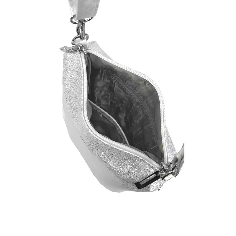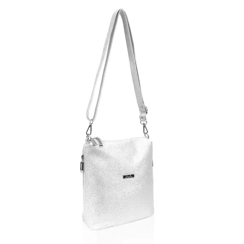 Dámska kabelka cez rameno Zellia striebornej farby, bočná taška