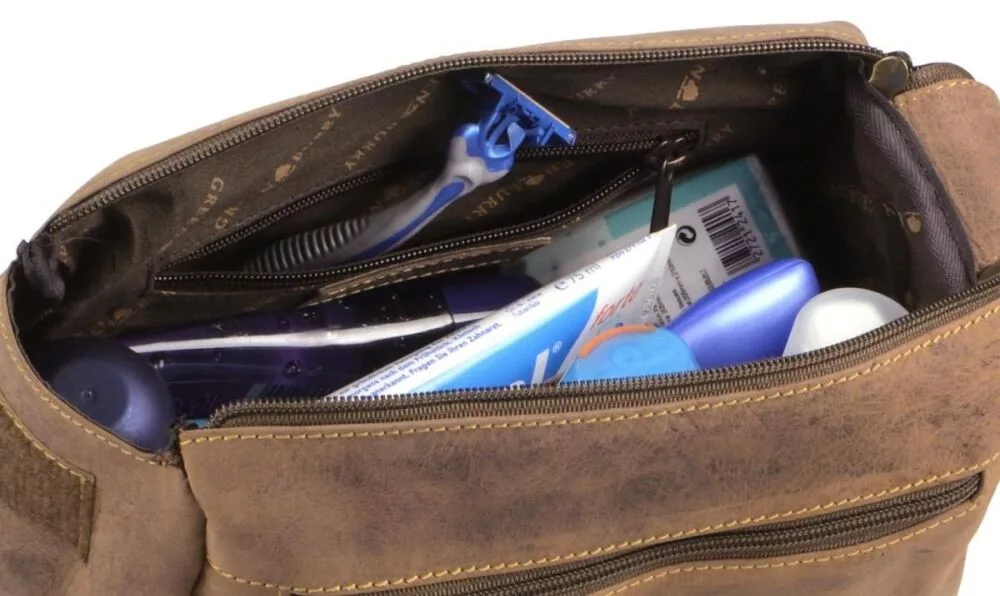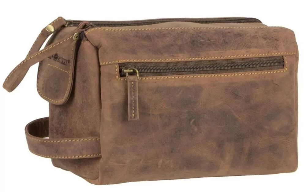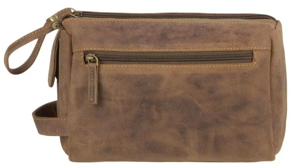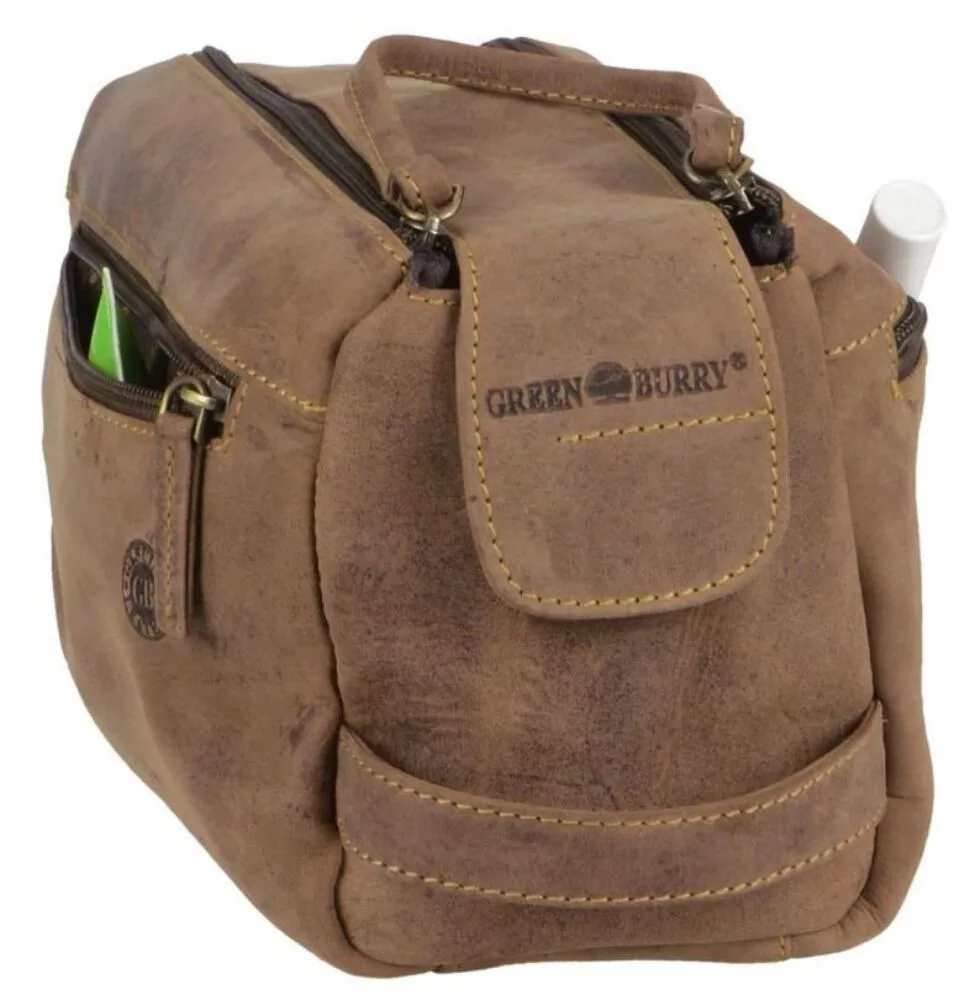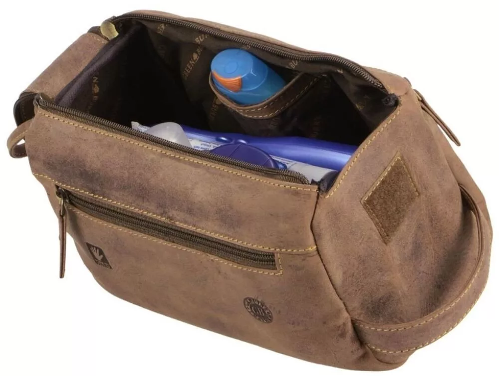 Starožitná hnedá peňaženka z hovädzej kože z kolekcie Greenburry Vintage je dobrou voľbou nielen pre svoj štýlový vzhľad, ale aj pre funkčný dizajn, pretože umožňuje jednoduché skladovanie toaletných potrieb. Jeho hlavný priestor je vybavený dvojitým zipsom a suchým zipsom, v ktorom nájdete vrecko na zips a menšie otvorené vrecko. Na prednej aj zadnej strane tašky je umiestnené uzamykateľné vrecko, vďaka ktorému sa ľahko dostanete aj k menším veciam.
