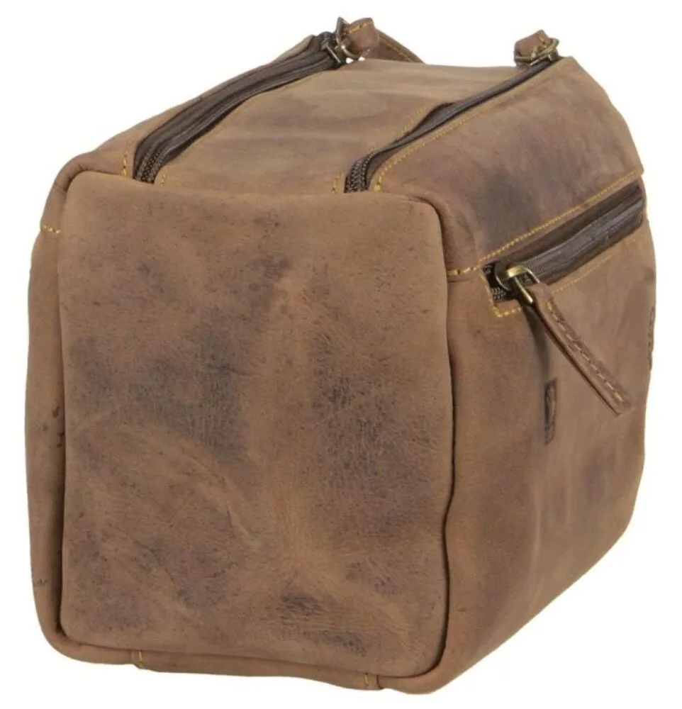 Starožitná hnedá peňaženka z hovädzej kože z kolekcie Greenburry Vintage je dobrou voľbou nielen vďaka svojej štýlovej vzhľadom, ale aj funkčným dizajnom, ktorý umožňuje jednoduché skladovanie toaletných potrieb. Jeho hlavný priestor je vybavený dvojitým zipsom a suchým zipsom, v ktorom nájdete vrecko na zips a menšie otvorené vrecko. Na prednej aj zadnej strane tašky je umiestnené uzamykateľné vrecko, vďaka ktorému sa ľahko dostanete aj k menším veciam.