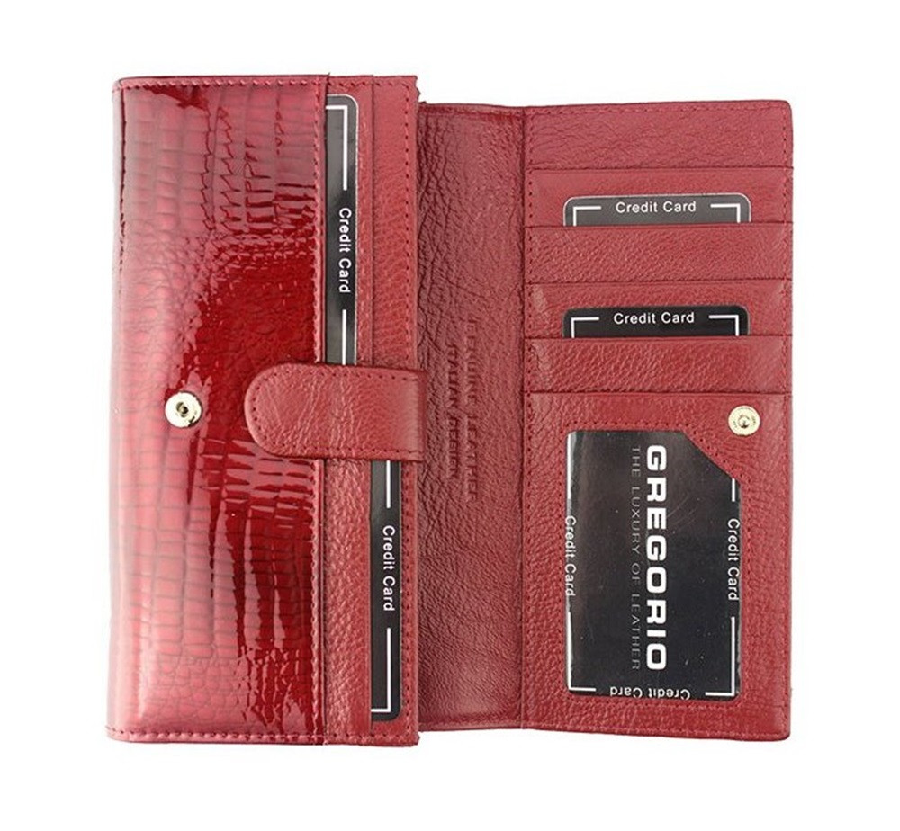 Gregorio dámska, kroko vzor, bordová lakovaná peňaženka 18 × 10 cm