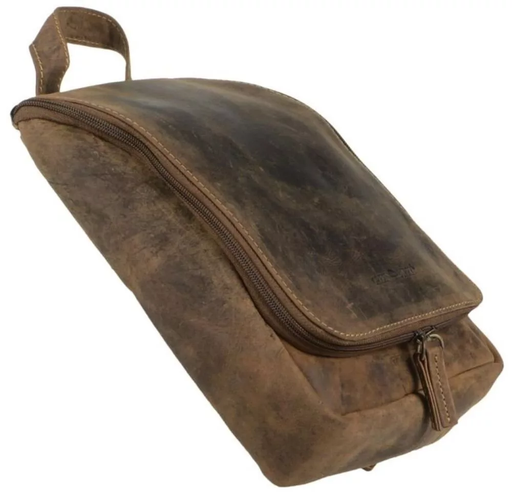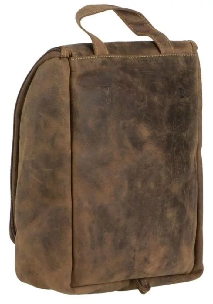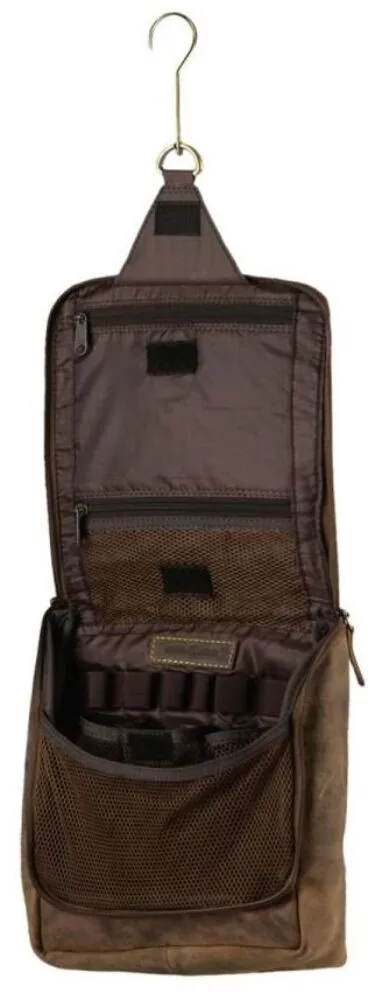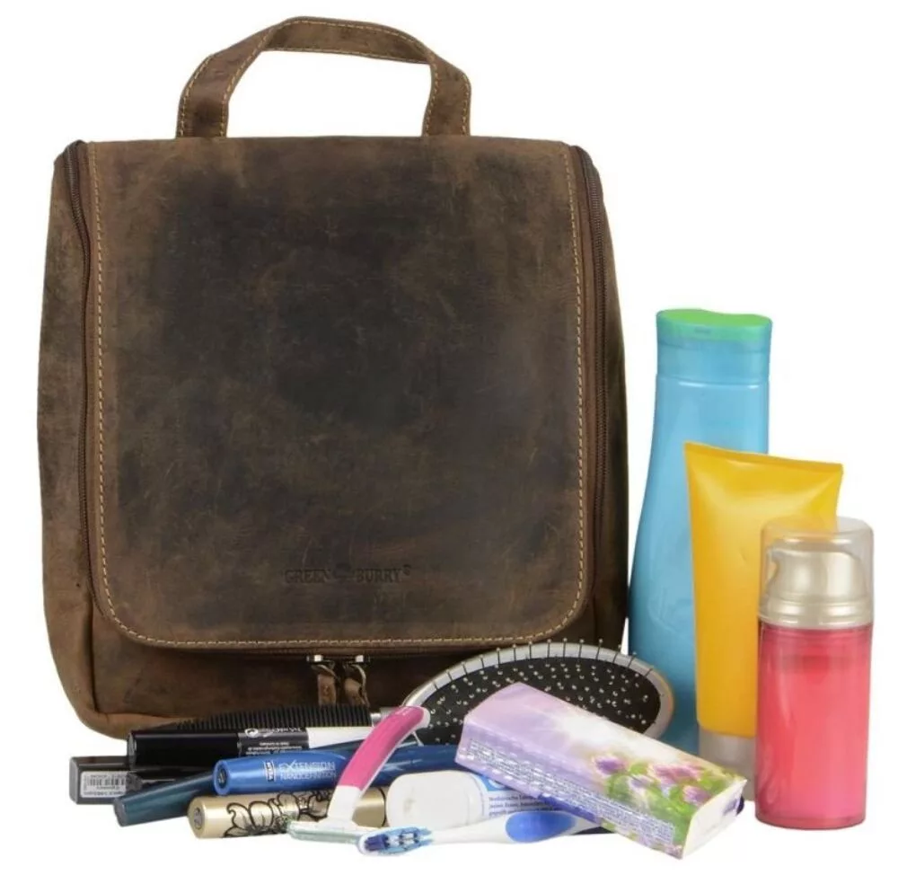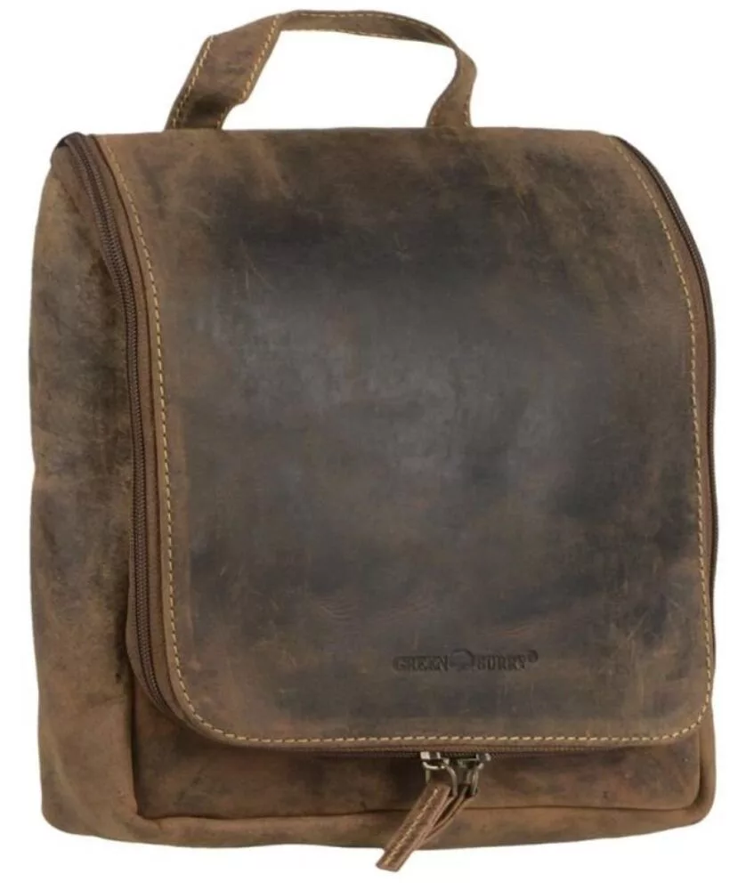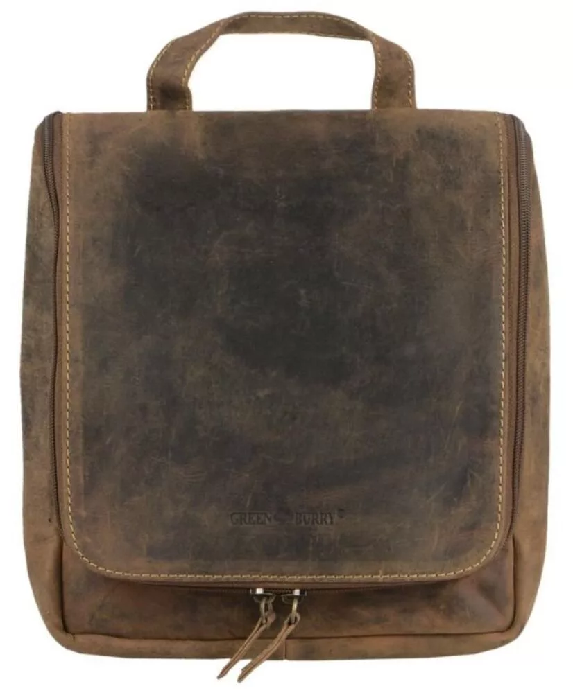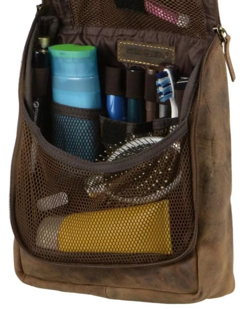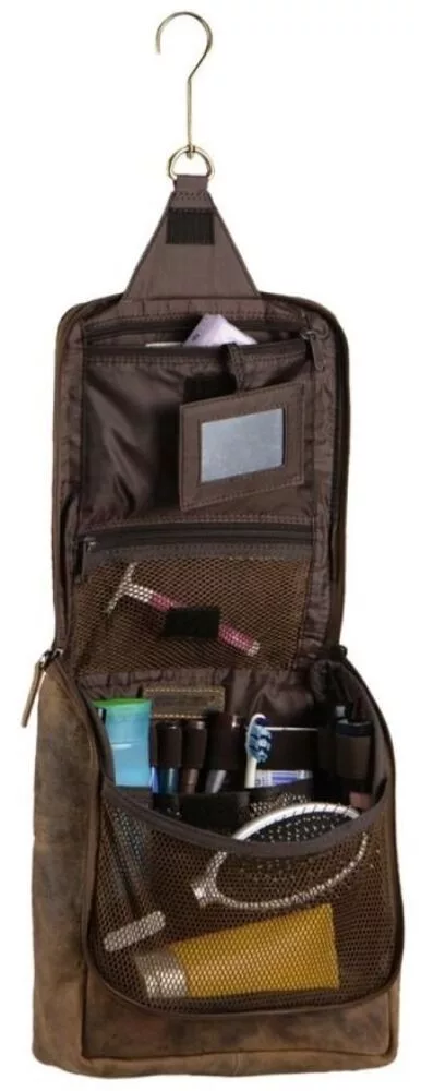 Hnedá hovädzia koža so starožitným efektom z kolekcie Greenburry Vintage nie je dobrou voľbou nielen kvôli svojmu štýlovému vzhľadu, ale aj kvôli funkčnému dizajnu, pretože umožňuje jednoduché skladovanie toaletných potrieb. Jej hlavná priehradka je vybavená zipsom, v ktorej nájdete tri otvorené sieťované vrecká a desať menších vreciek na zapínanie na gumu. Na vnútornej strane veka kufríka sa umiestnilo aj vrecko na zips, vďaka ktorému sa dajú ľahko uložiť menšie veci. Vo vnútri kozmetickej taštičky je umiestnená rukoväť na uľahčenie prepravy.