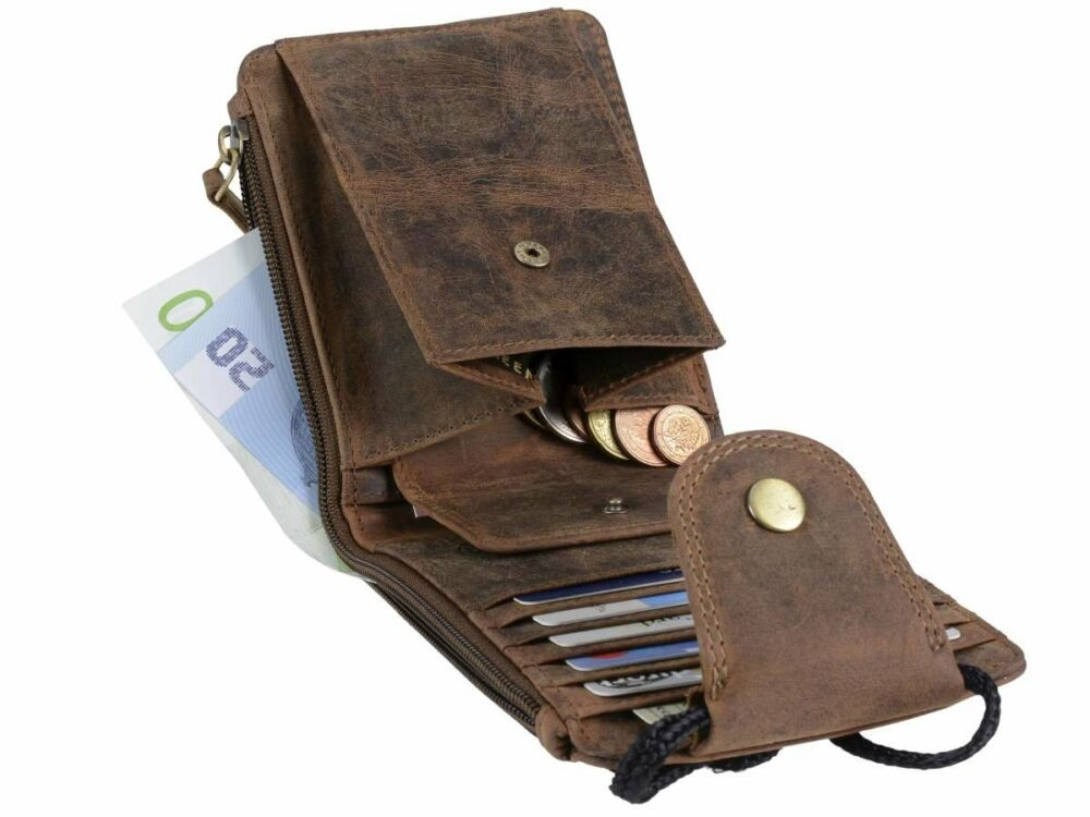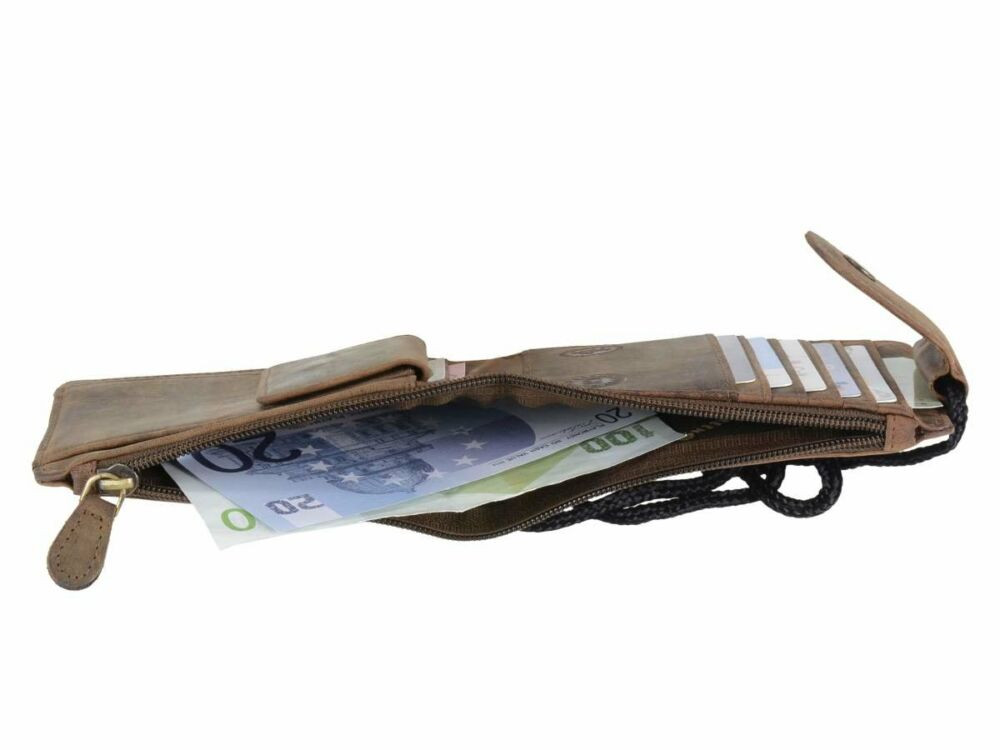 Kožená peňaženka Greenburry so zaväzovaním na krk a možnosťou pripevnenia na opasok