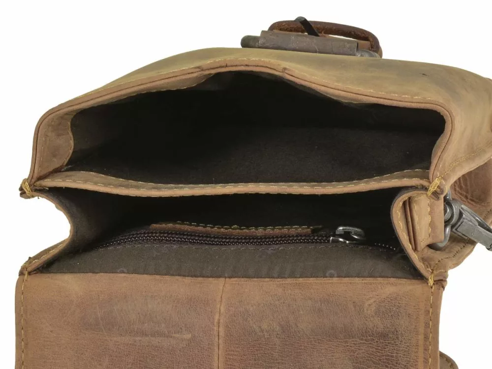 Hnedá taška na motocykel z hovädzej kože so starožitným efektom z kolekcie Greenburry Vintage je dobrou voľbou pre svoj štýlový a jedinečný vzhľad, ako aj funkčnosť.