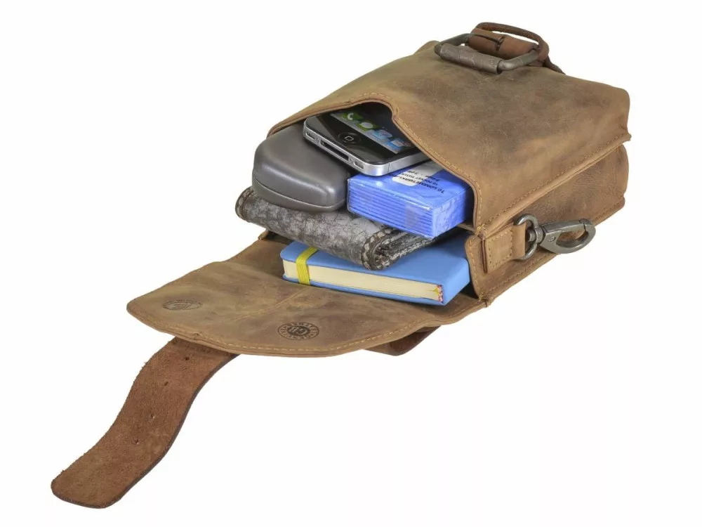Antický efekt z kolekcie Greenburry Vintage Okrem štýlového a jedinečného vzhľadu je hnedá taška na opasok z hovädzej kože tiež dobrou voľbou vďaka svojej funkčnosti.