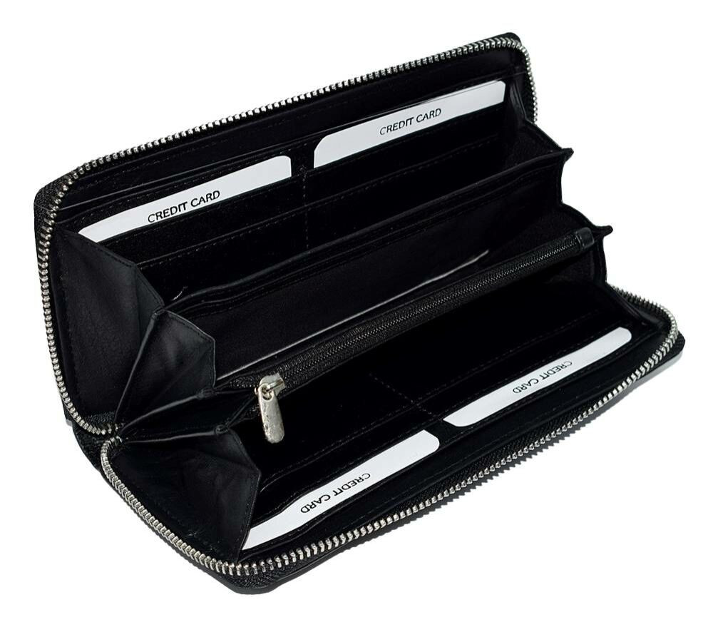 Vo vnútri peňaženky je 14 priehradiek na karty, 3 priehradky na papierové peniaze a priehradka na drobné, ako aj 5 priehradiek na doklady.