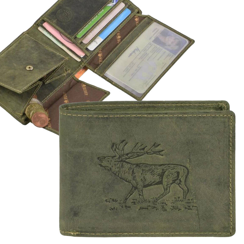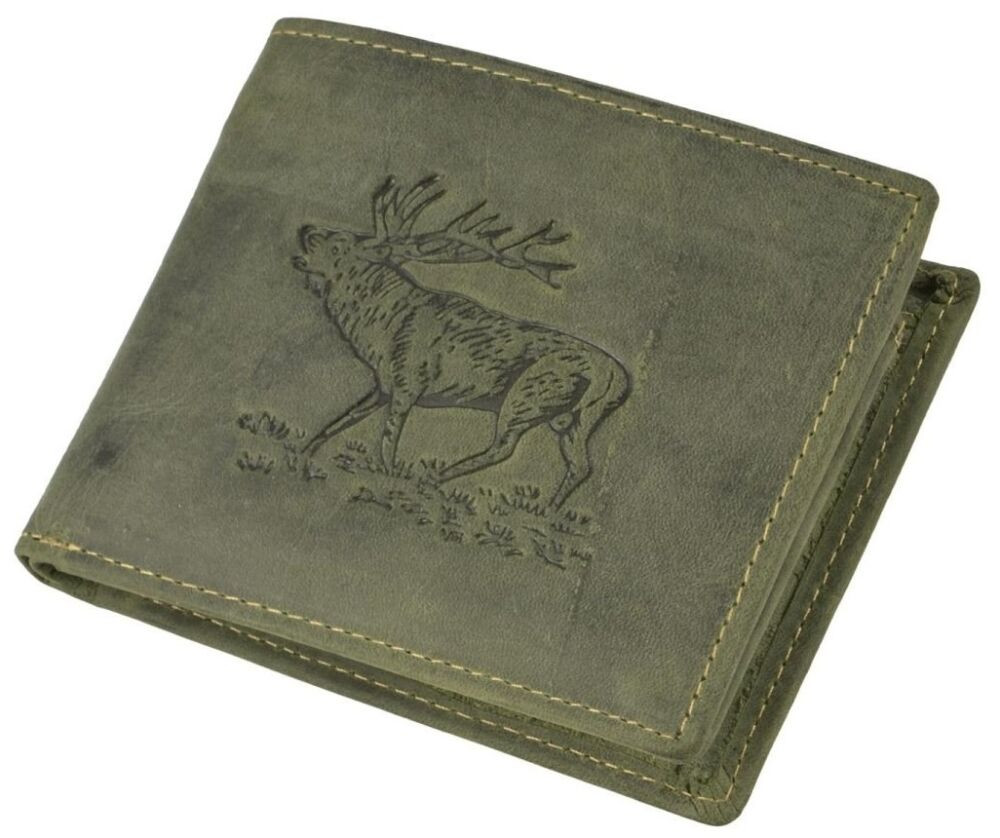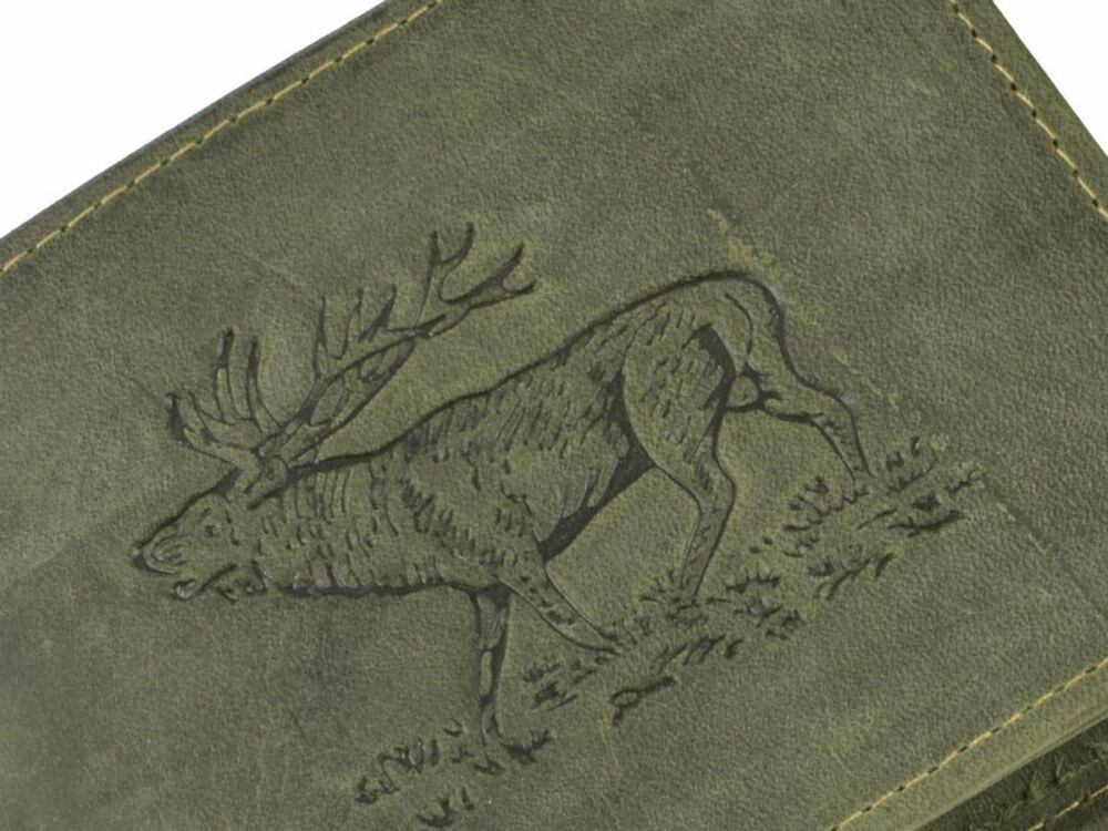 Lovecká kožená peňaženka so vzorom jeleňa Greenburry, olivová