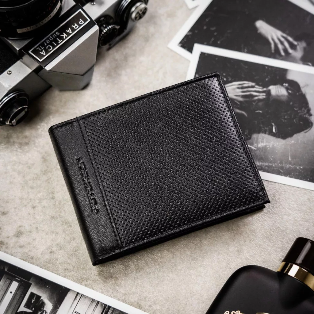 Darčeková sada pánskej peňaženky a opasku Peterson PTN N992-DOT BLACK z čiernej hovädzej kože je moderná, mužne vyzerajúca kombinácia, ktorá spája klasickú funkčnosť s výrazným dizajnom povrchu. Sada je ideálnou voľbou na každodenné použitie aj ako sofistikovaný darček.
