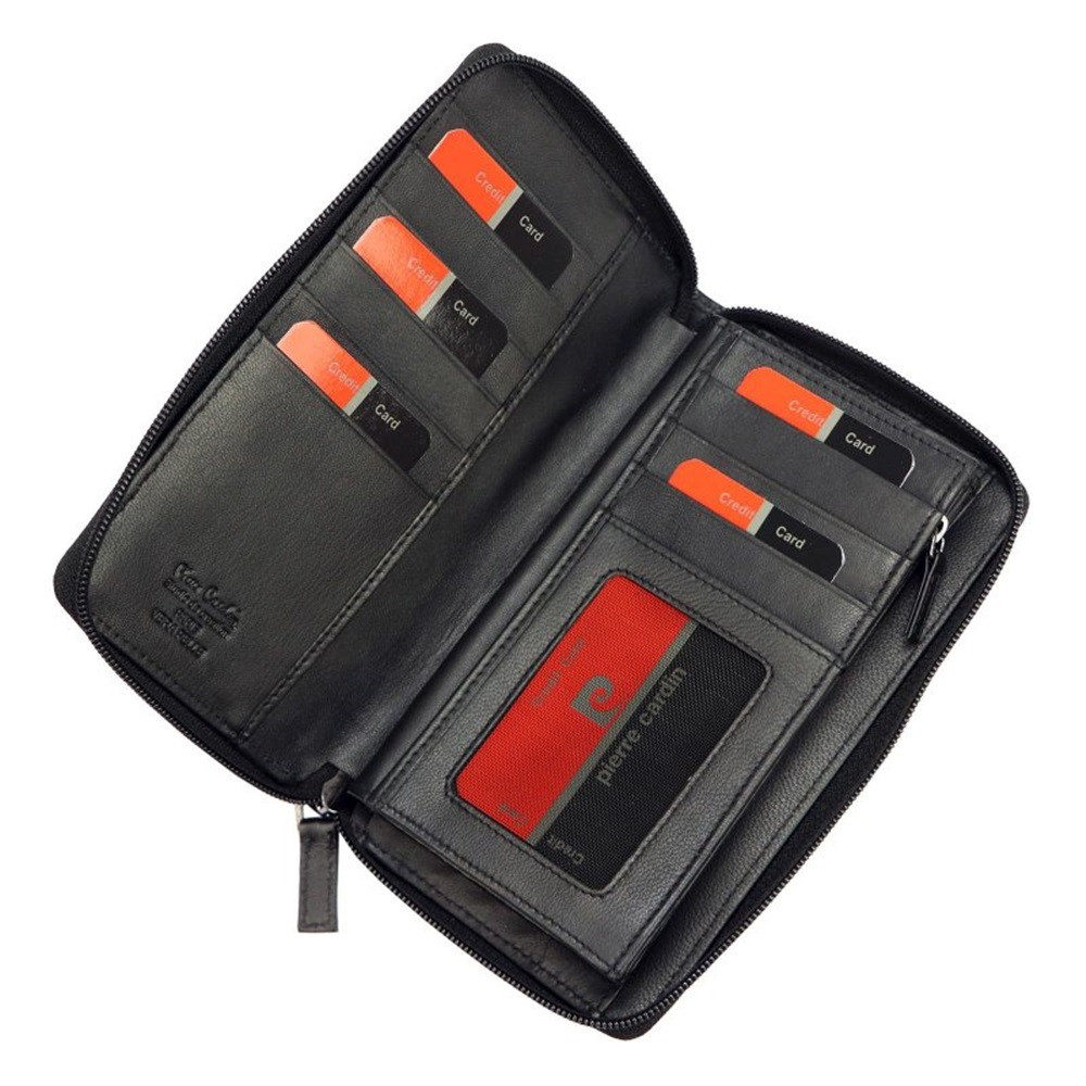 Prednú stranu peňaženky zdobí Pierre Cardin reliéfny prívesok.