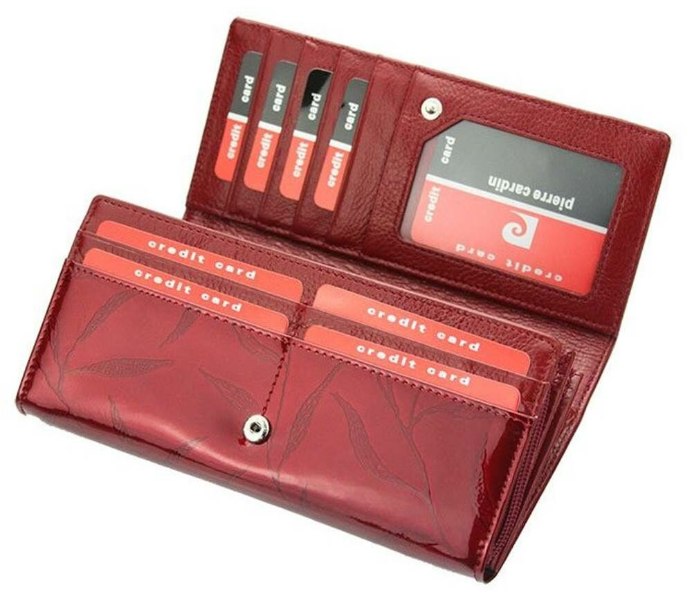 Pierre Cardin dámska lakovaná peňaženka, bordová, listový vzor, 19 × 10 cm