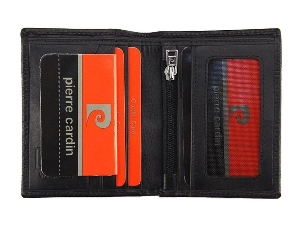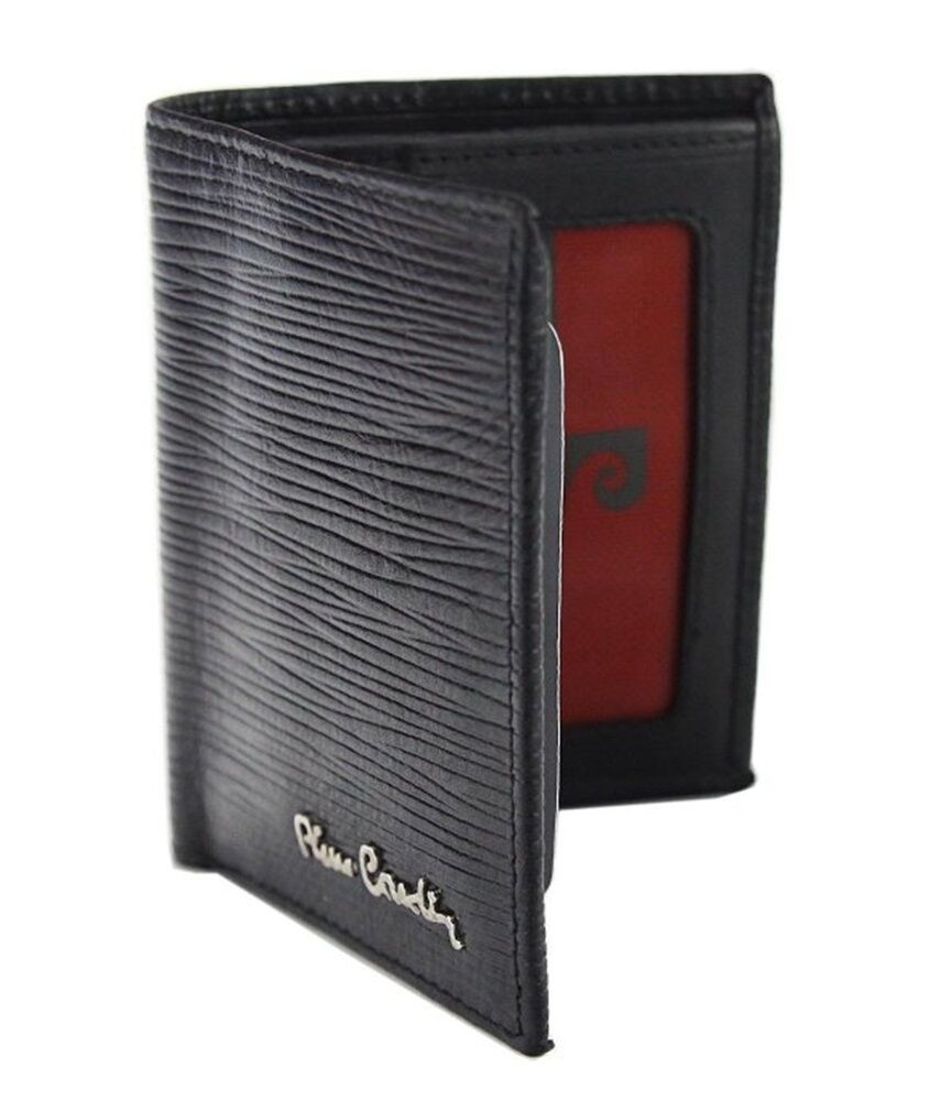 Pierre Cardin pánska kožená peňaženka, držiak na karty, čierna, tlačený vzor, RFID 8 × 10 cm