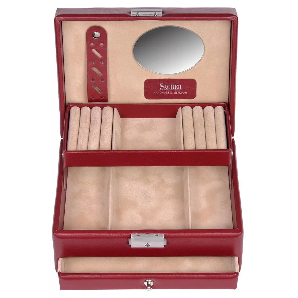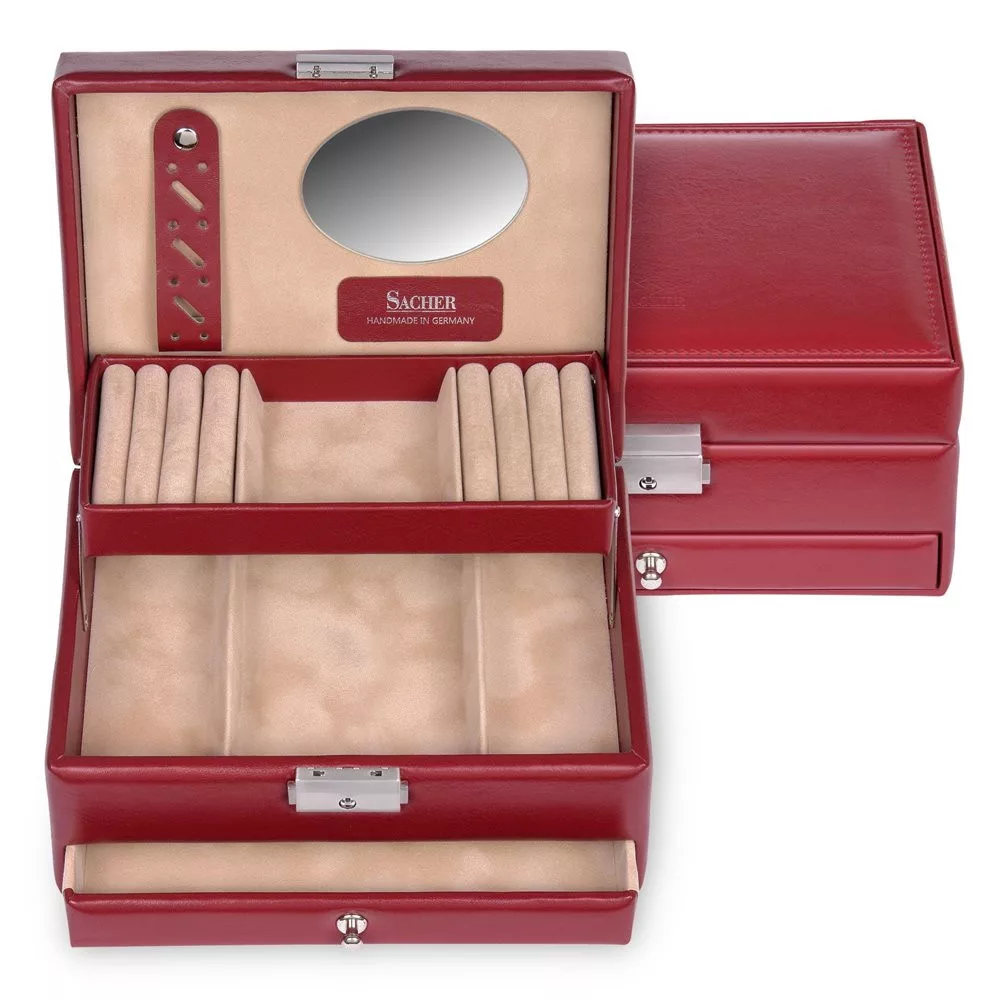 Šperkovnica vyrobená ručne v manufaktúre 150-ročnej nemeckej firmy Sacher, známej svojou vynikajúcou kvalitou.