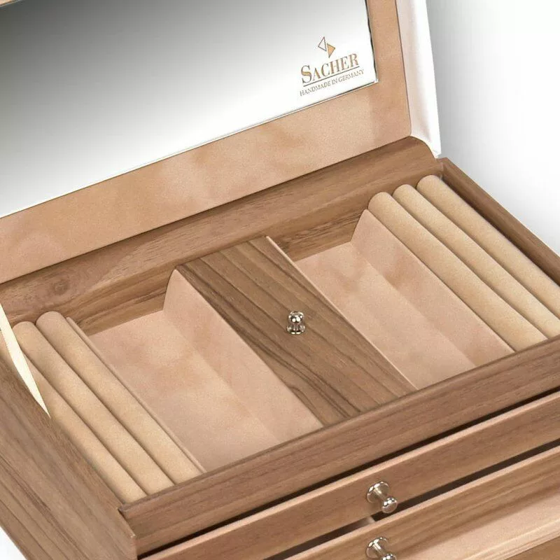 Známe pre svoju vynikajúcu kvalitu, 160 rokov stará Šperkovnica vyrobená výhradne ručne nemeckou firmou Sacher, v manufaktúre v Nemecku.