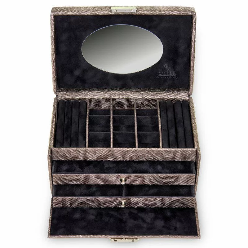 Sacher: farebná šperkovnica Elly taupe, držiak na šperky