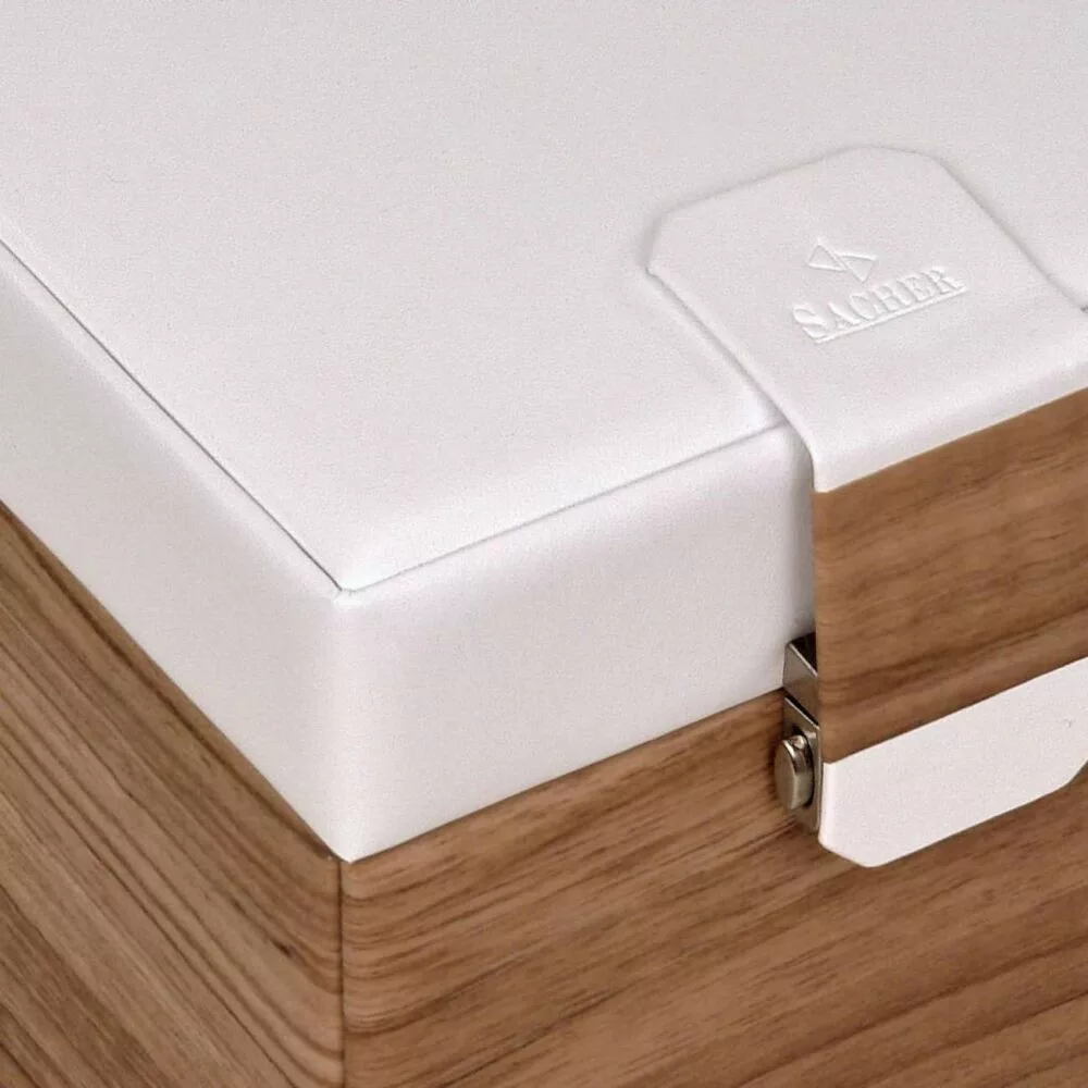 Evita je severská kolekcia v tomto škandinávskom štýle, Severský kúsok dubu v kombinácii s bielou, ktorý mihnutím oka vyčarí v našom byte príjemnú atmosféru severských lesov. Ako všetky šperkovnice Sacher, aj tento špeciálny kúsok sa vyznačuje eleganciou a klasickým štýlom.