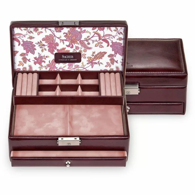 Šperkovnice kolekcie Sacher Florage sú zdobené kvetinovými vzormi a sú stále klasické. Farebne sú šperkovnica dokonale zladené, a tak môžu byť nielen tým najvhodnejším úložným priestorom pre poklady, ale aj dekoračnými doplnkami nášho domova.