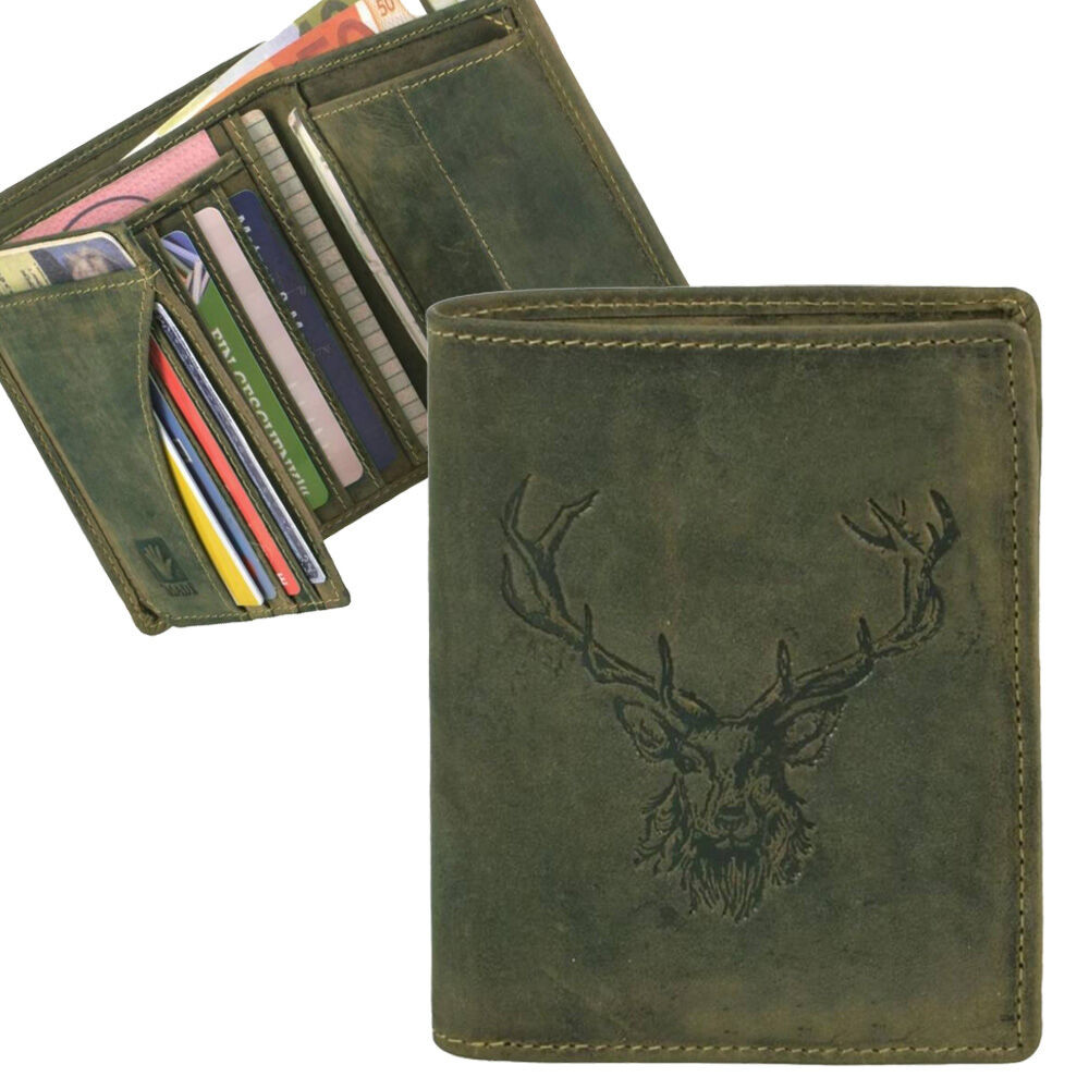 Lovecká kožená peňaženka so vzorom jeleňa Greenburry, olivová