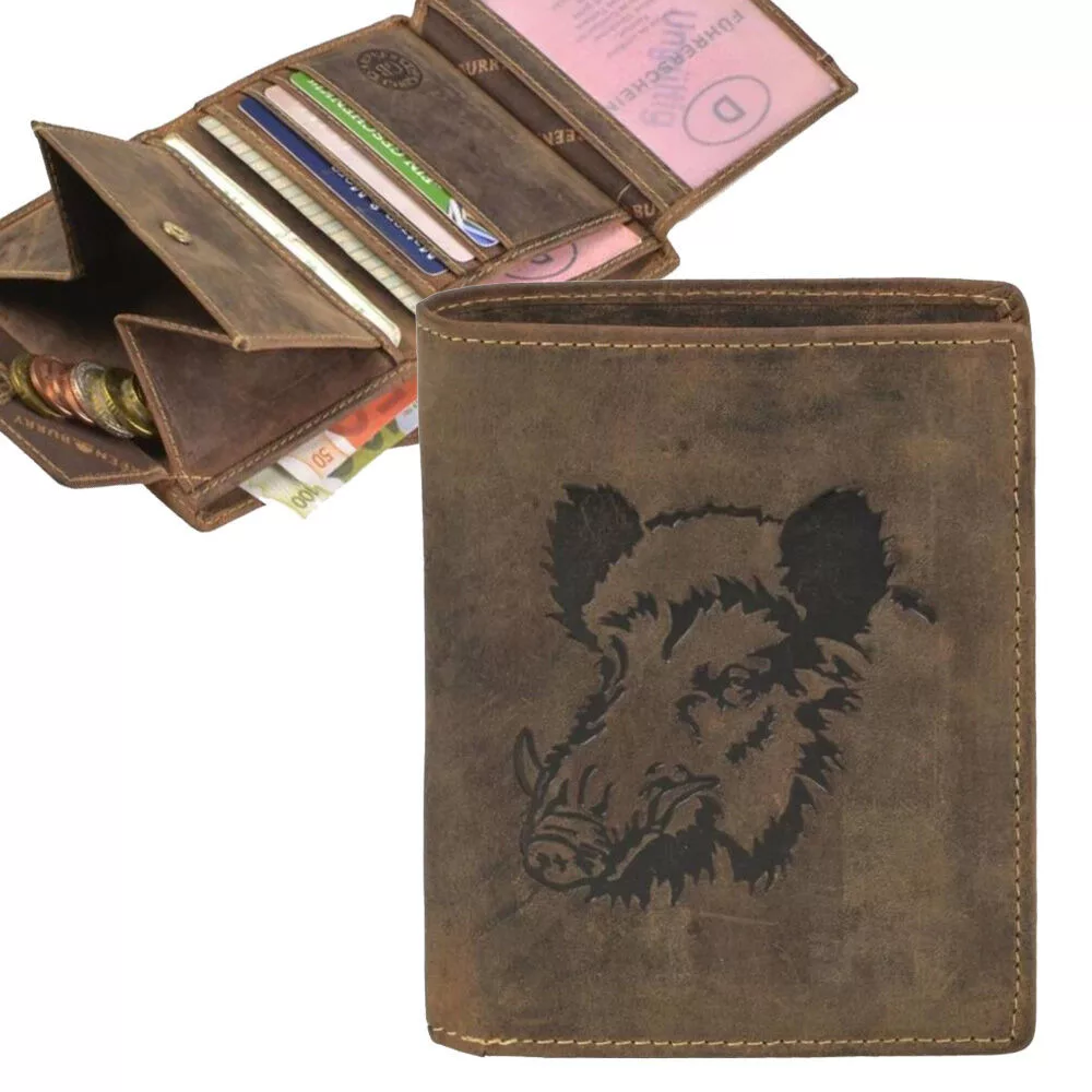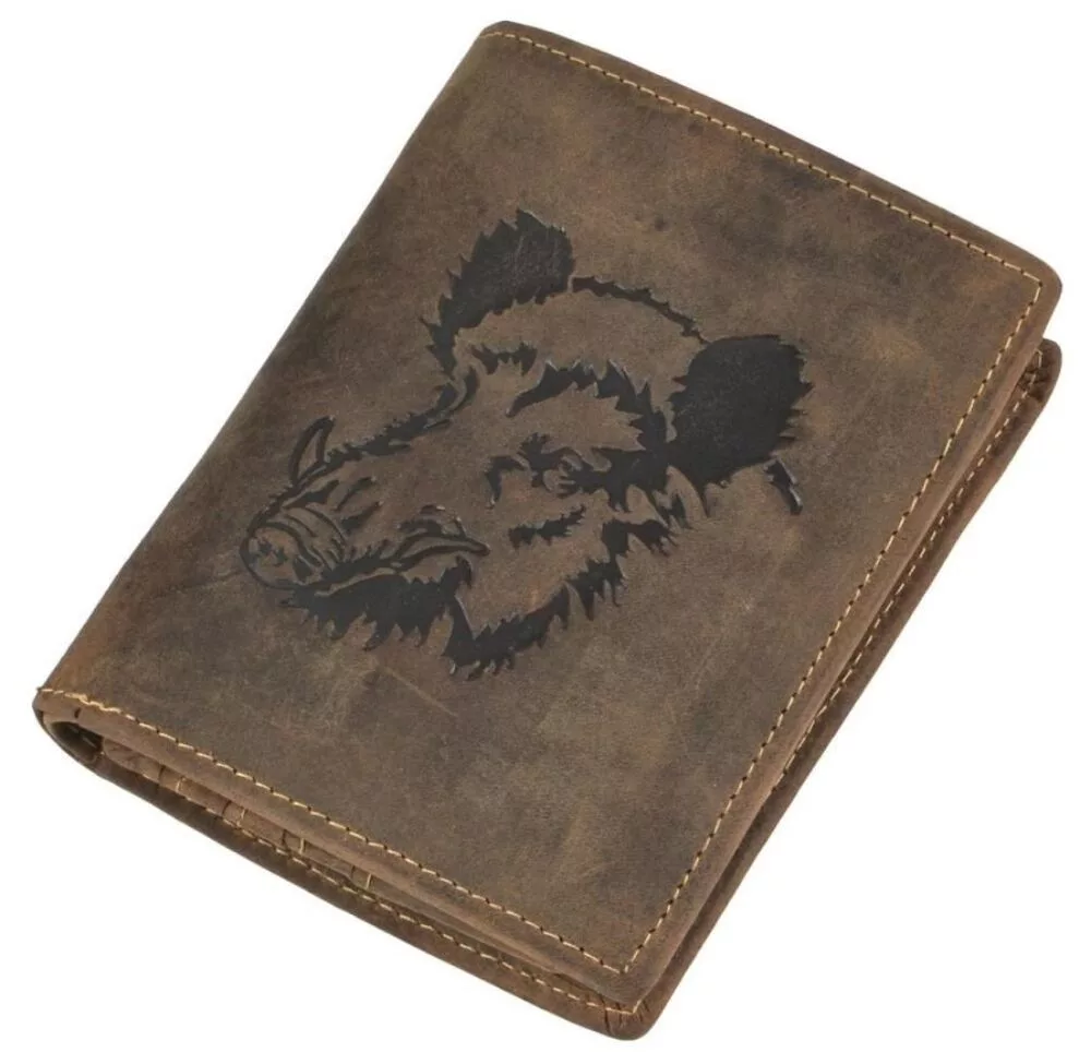 Lovecká kožená peňaženka so vzorom diviaka Greenburry