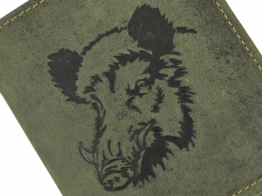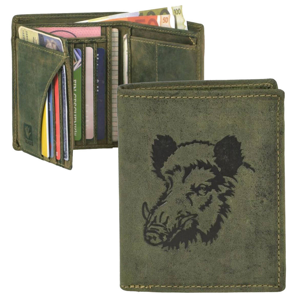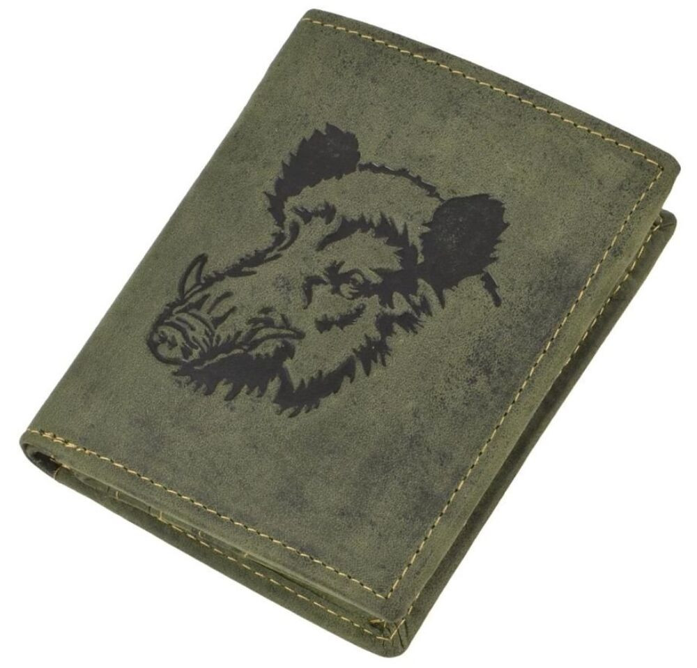 Lovecká kožená peňaženka so vzorom diviaka Greenburry, olivová