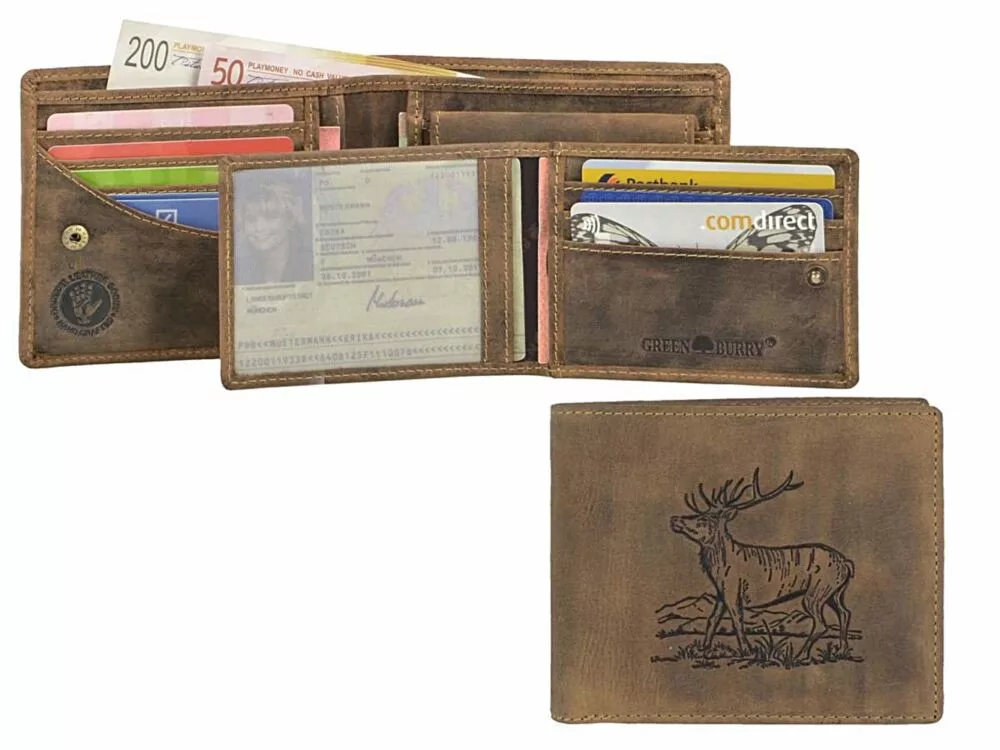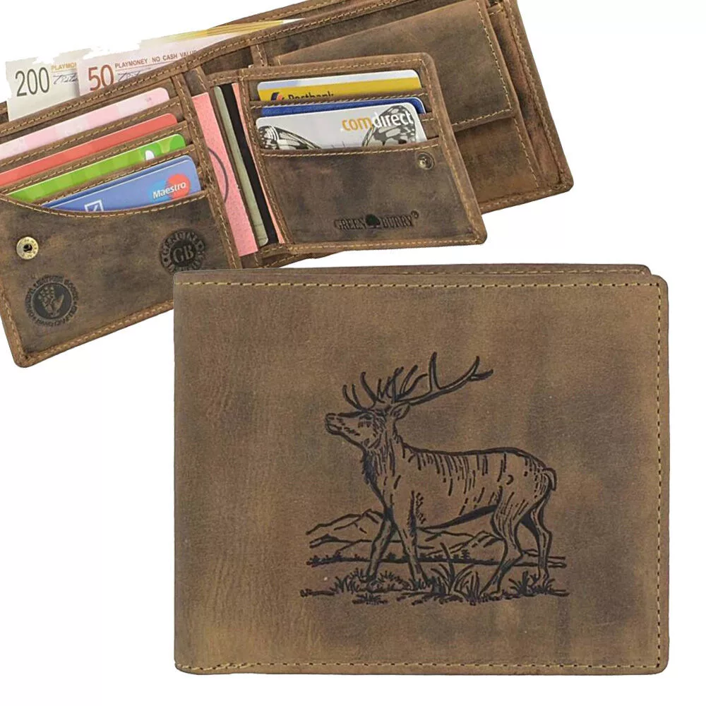 Lovecká kožená peňaženka so vzorom jeleňa Greenburry
