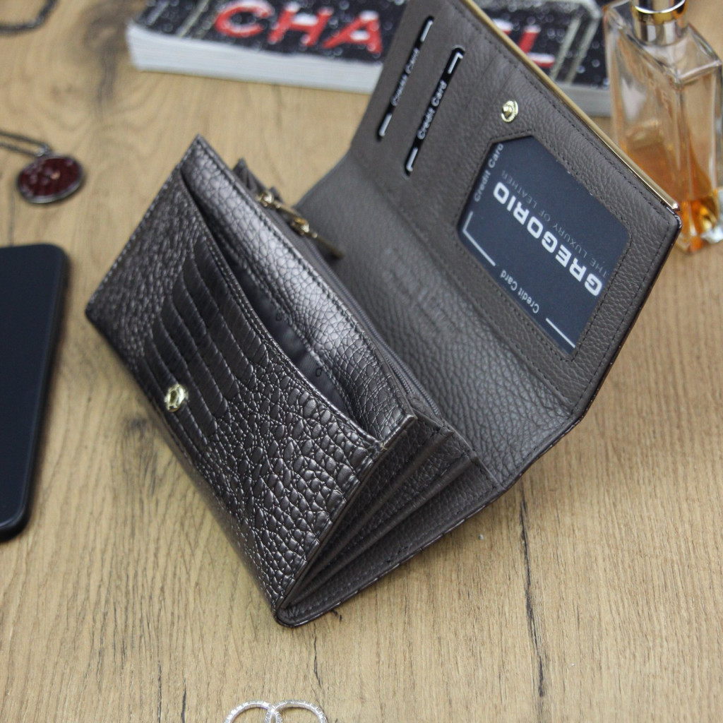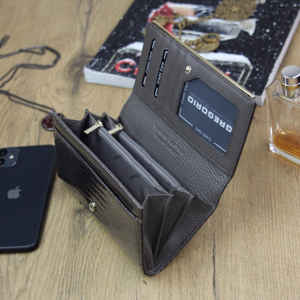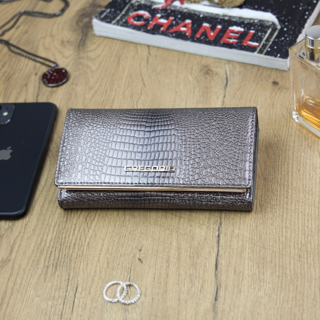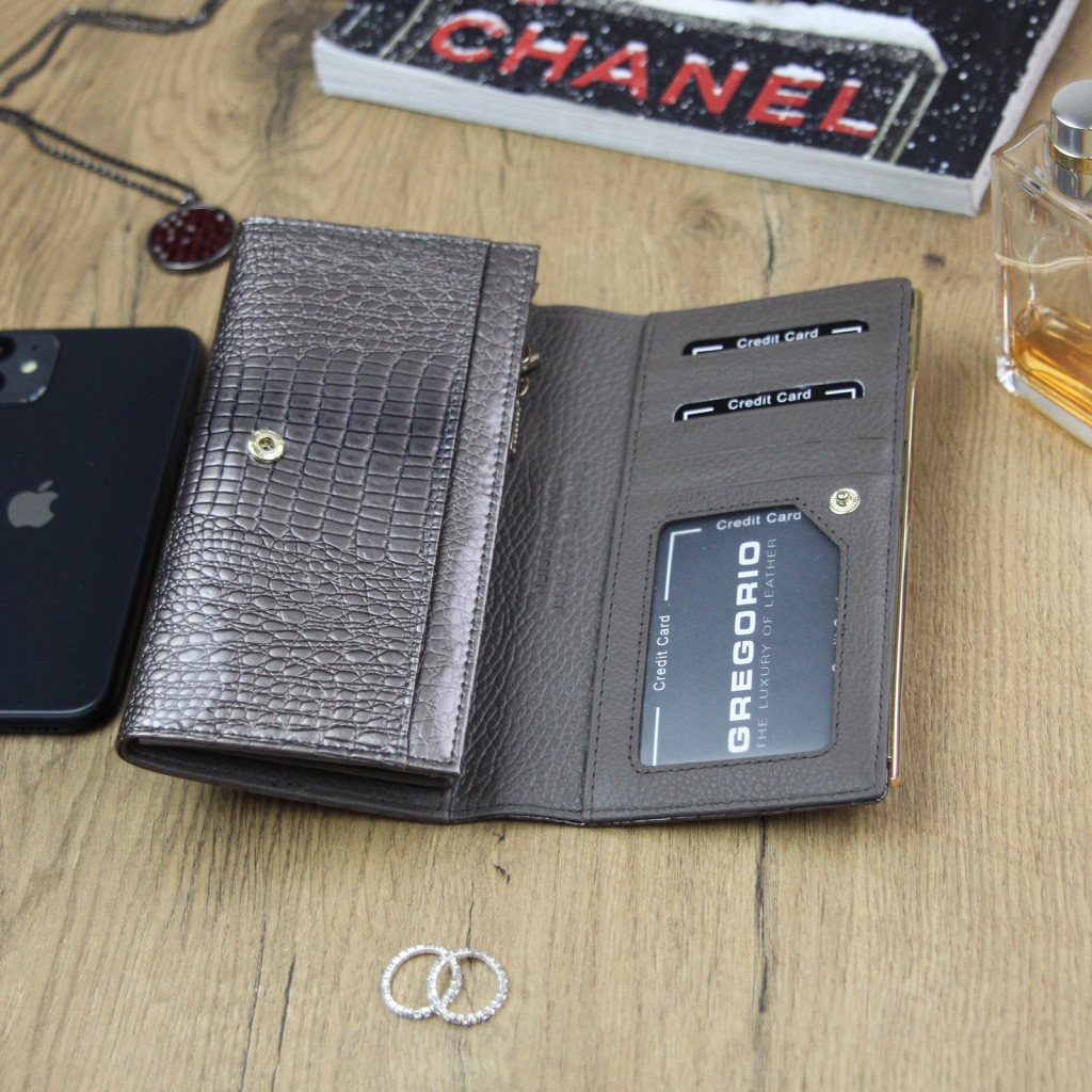 Gregorio SLL-114 szürke női marhabőr pénztárca 17.5 x 9.5 x 3.3 cm