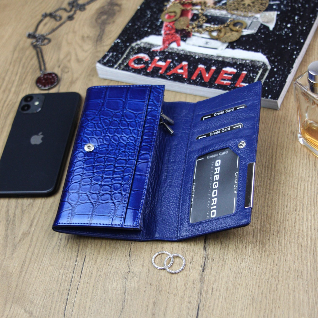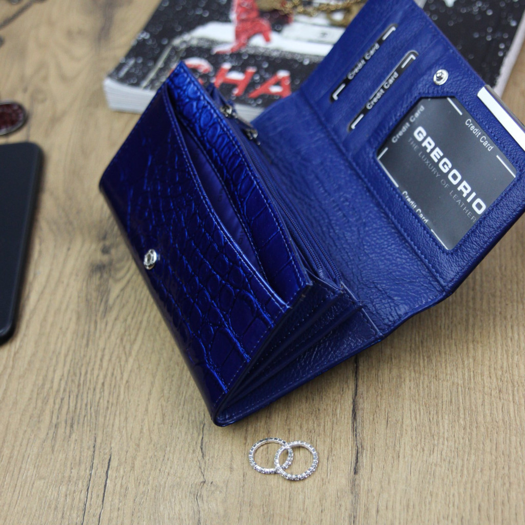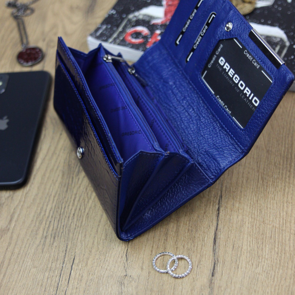 Gregorio BC-114 kék női marhabőr pénztárca 17.5 x 9.5 x 3.3 cm