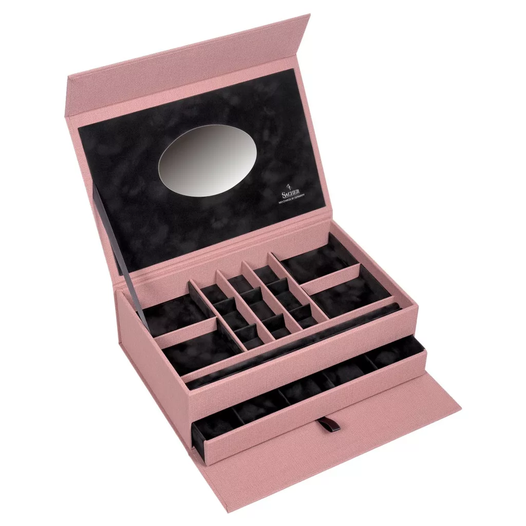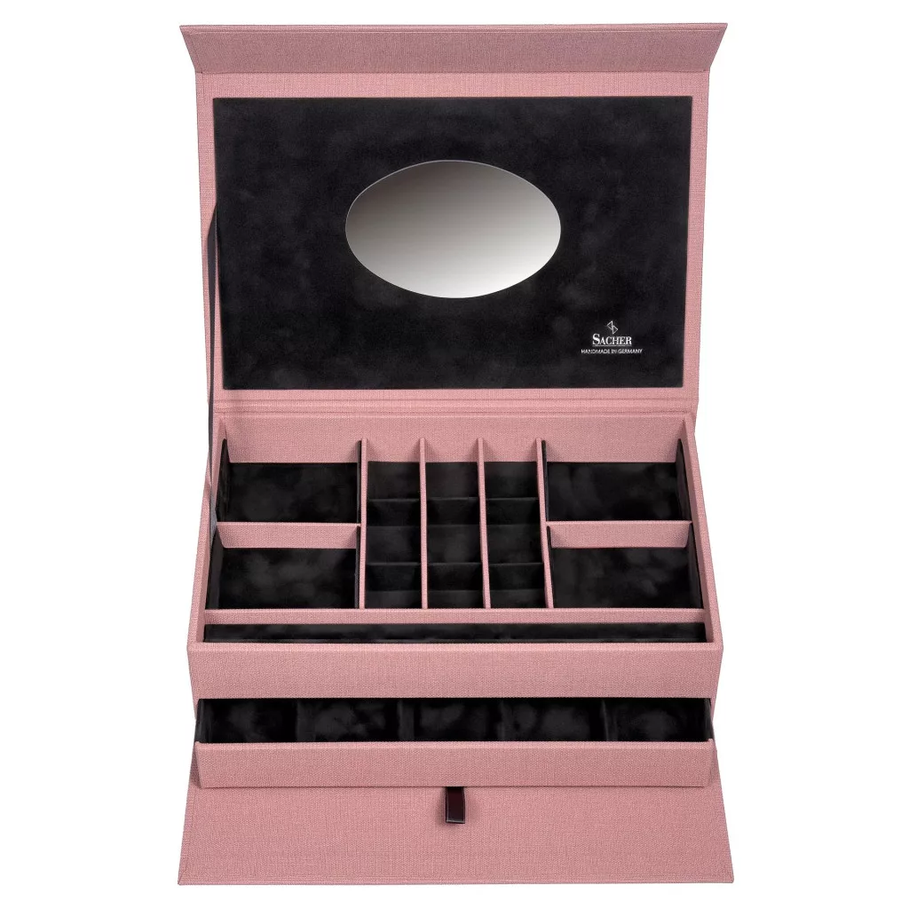 Vyrobené 160-ročnou nemeckou spoločnosťou Sacher, známy svojou vynikajúcou kvalitou v manufaktúre, výlučne ručne vyrábanou šperkovnicou.