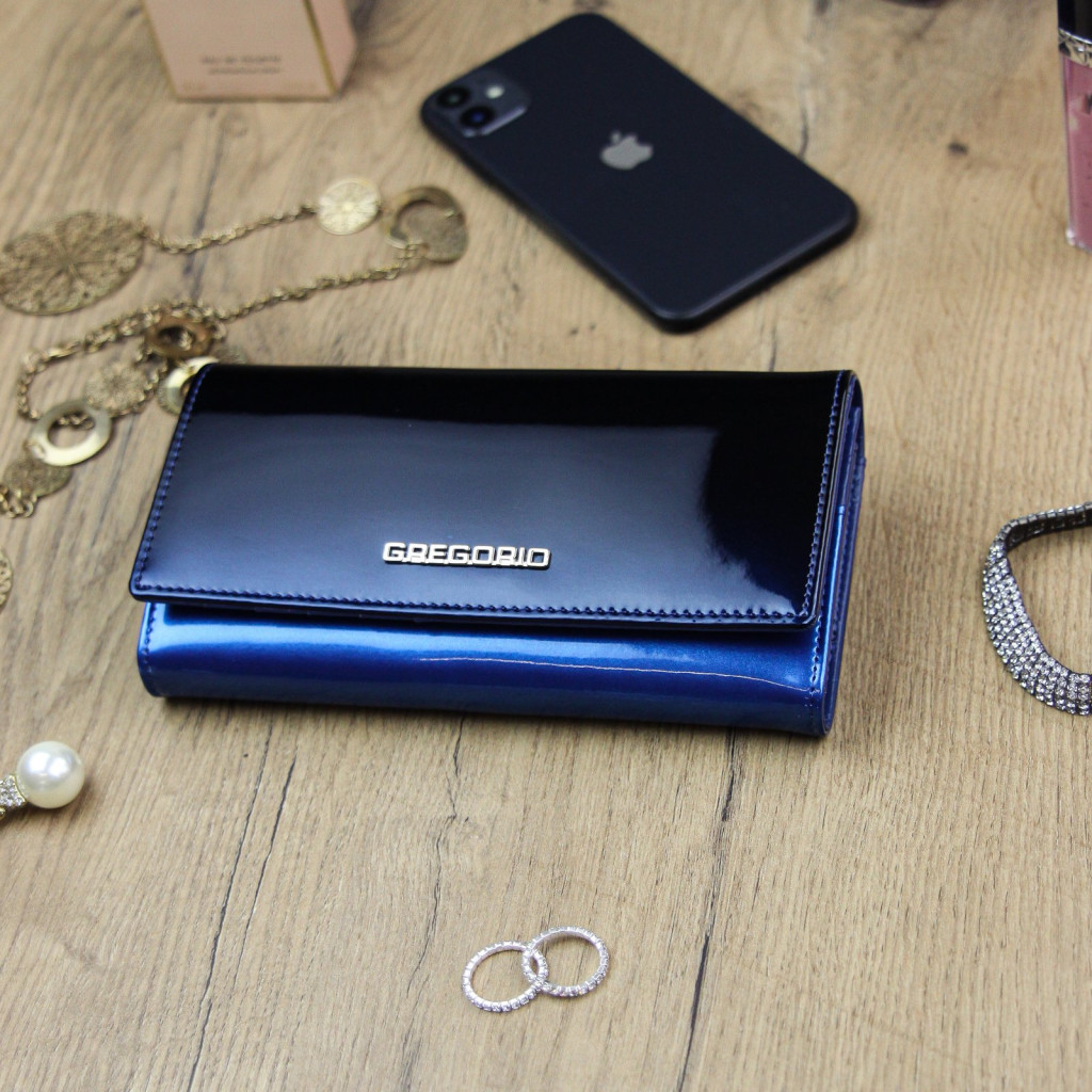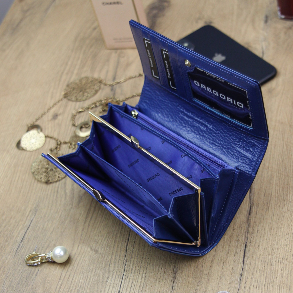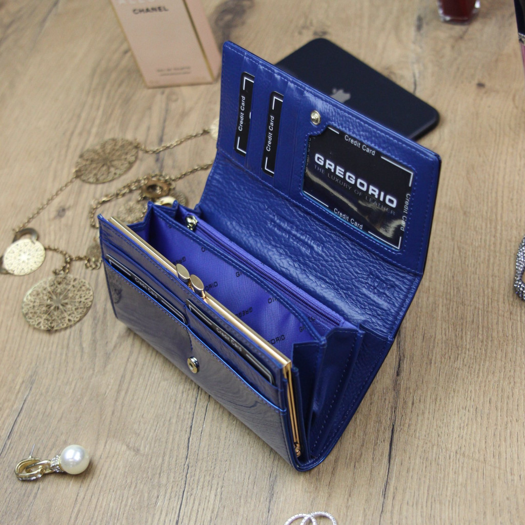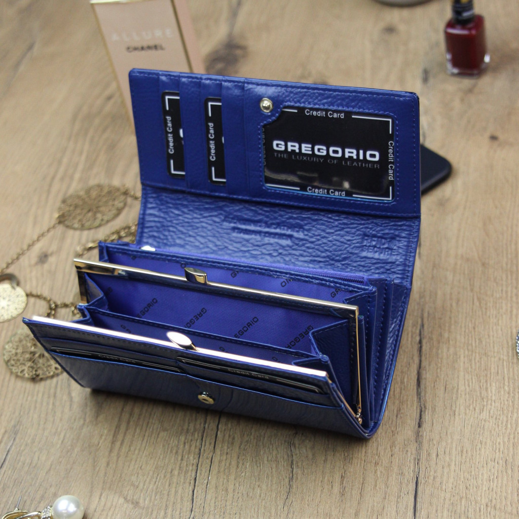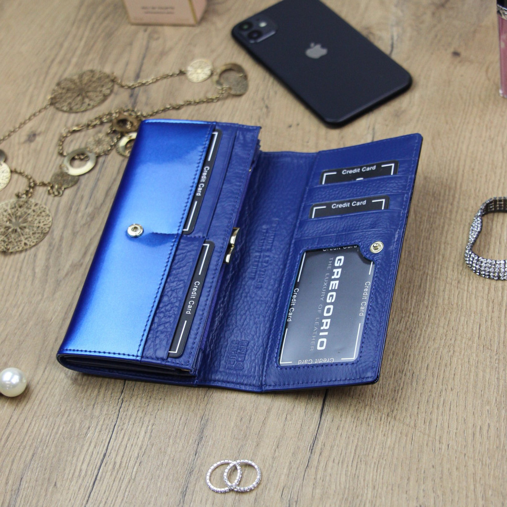 Gregorio SH-100 kék női marhabőr pénztárca 18.5 x 10 x 3.5 cm