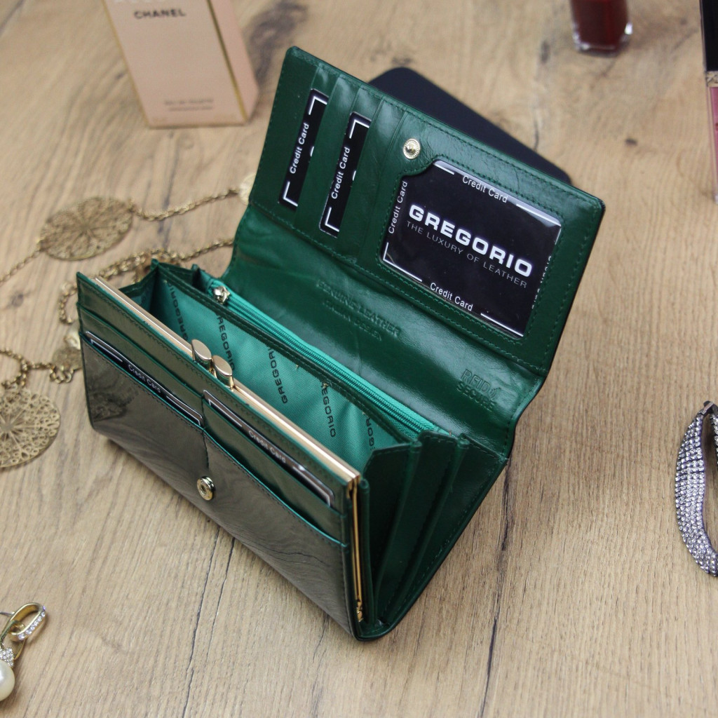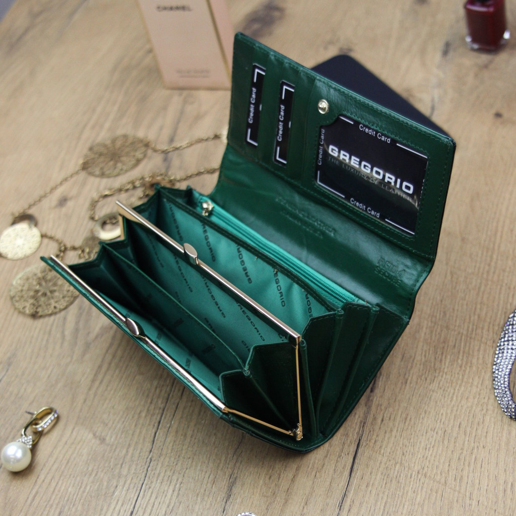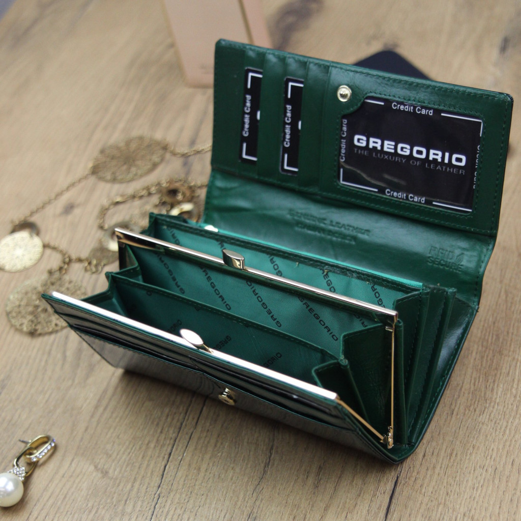 Gregorio SH-100 zöld női marhabőr pénztárca 18.5 x 10 x 3.5 cm