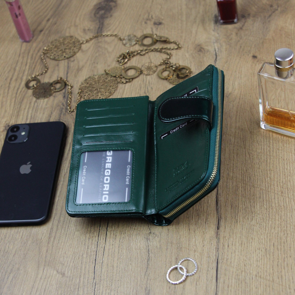 Gregorio SH-116 zöld női marhabőr pénztárca 9.5 x 17 x 3.3 cm