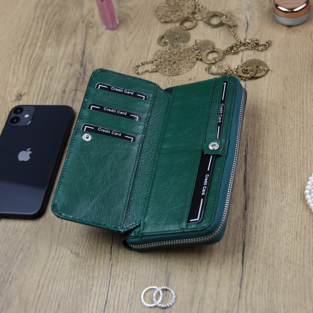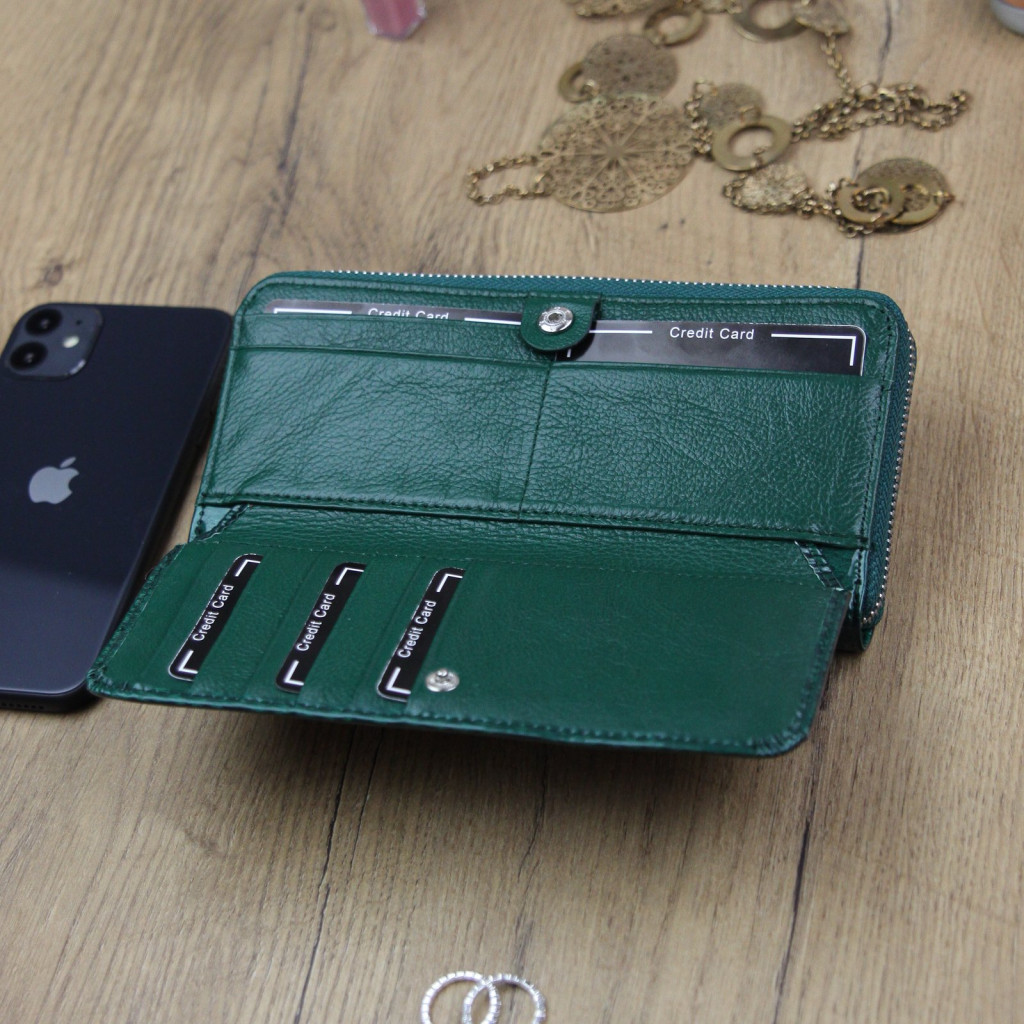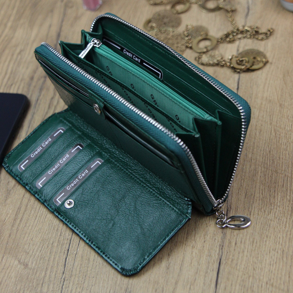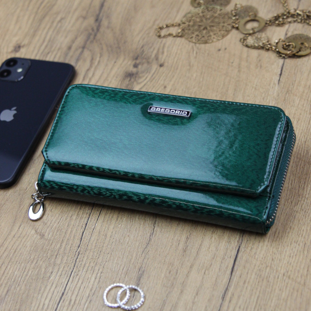 Gregorio PT-111 zöld női marhabőr pénztárca 19.5 x 9.5 x 3.8 cm