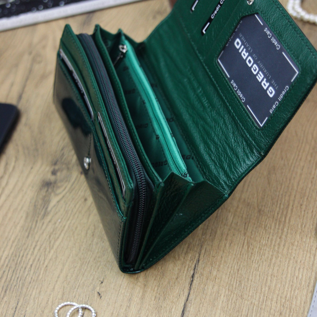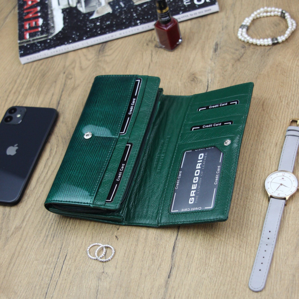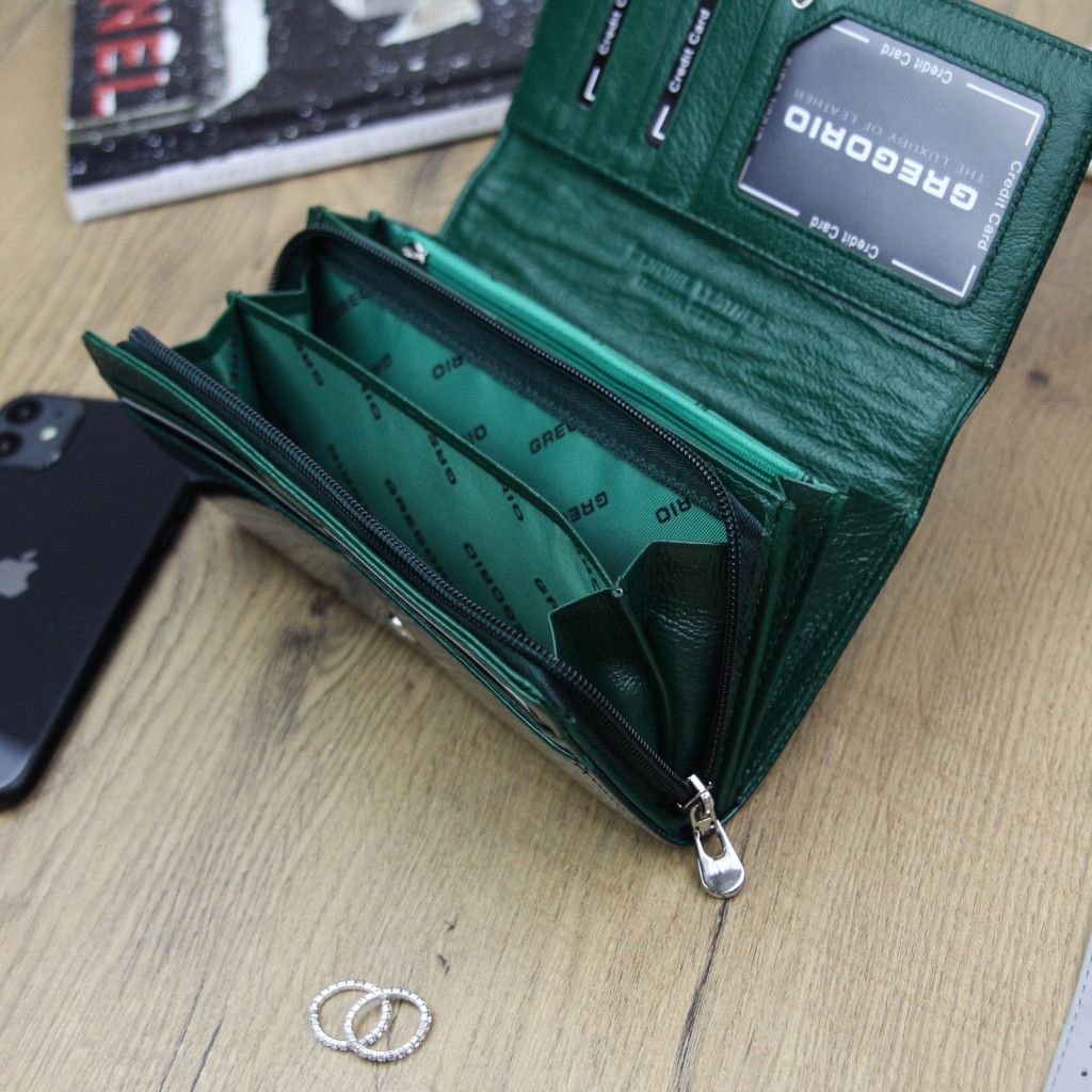 Gregorio LN-106 zöld női marhabőr pénztárca 19 x 10 x 3.5 cm