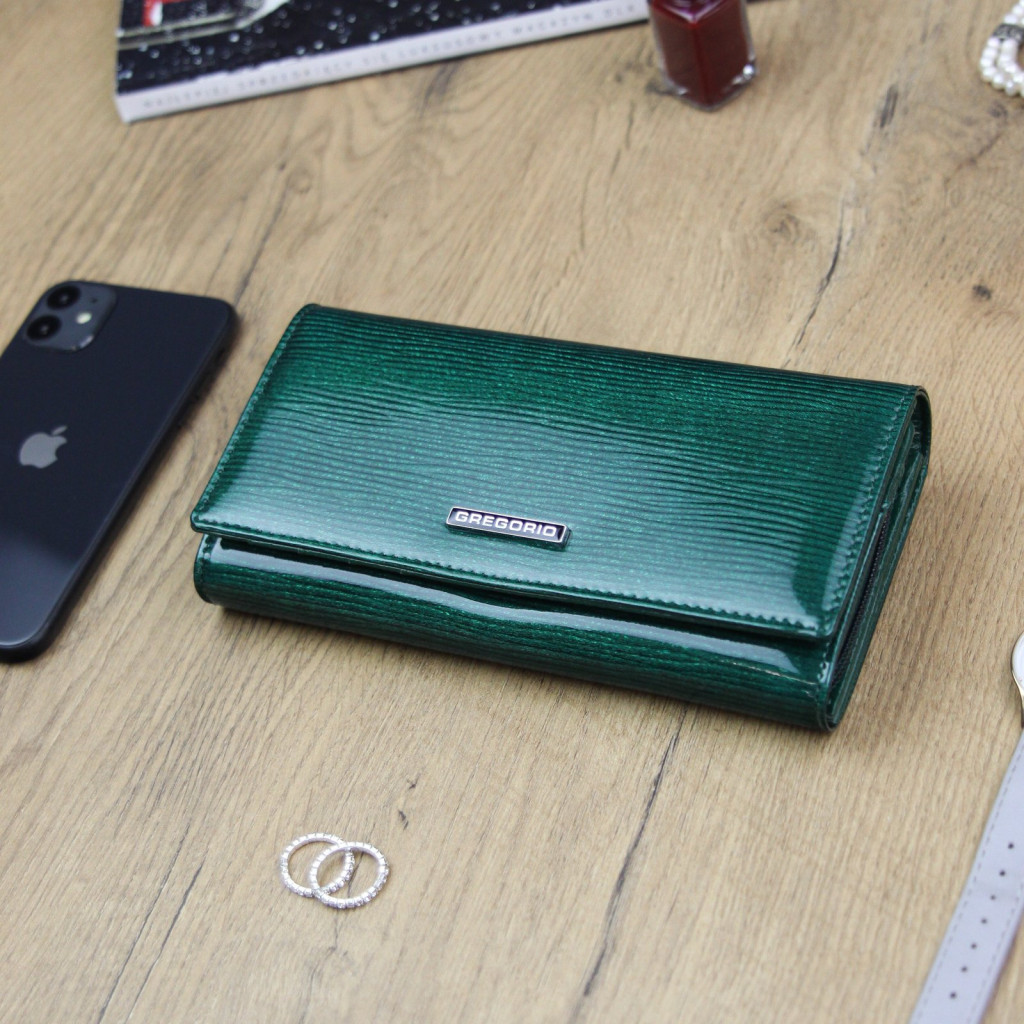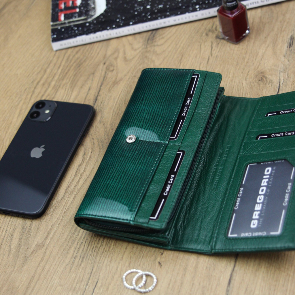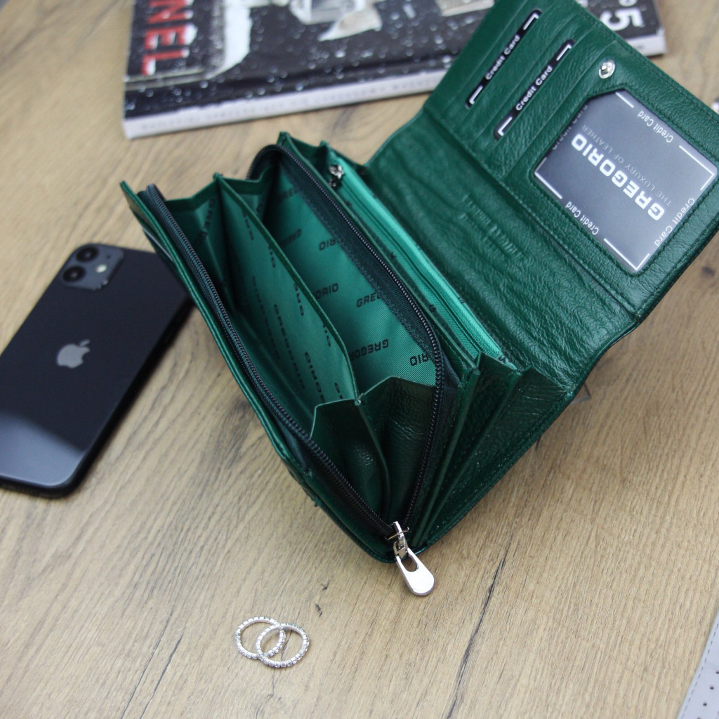 Gregorio LN-106 zöld női marhabőr pénztárca 19 x 10 x 3.5 cm