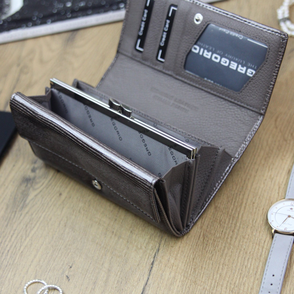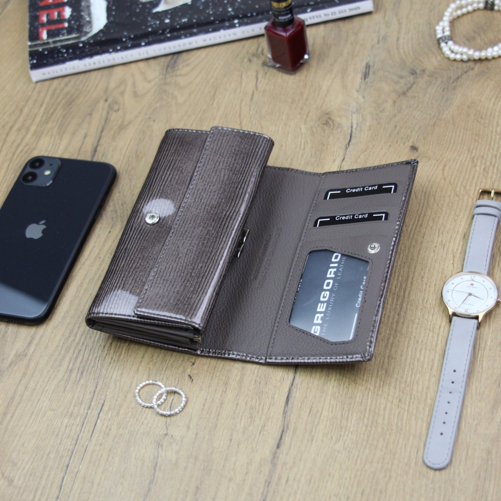 Gregorio LN-107 szürke női marhabőr pénztárca 16.5 x 9 x 3.8 cm