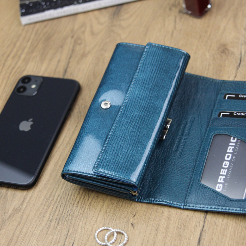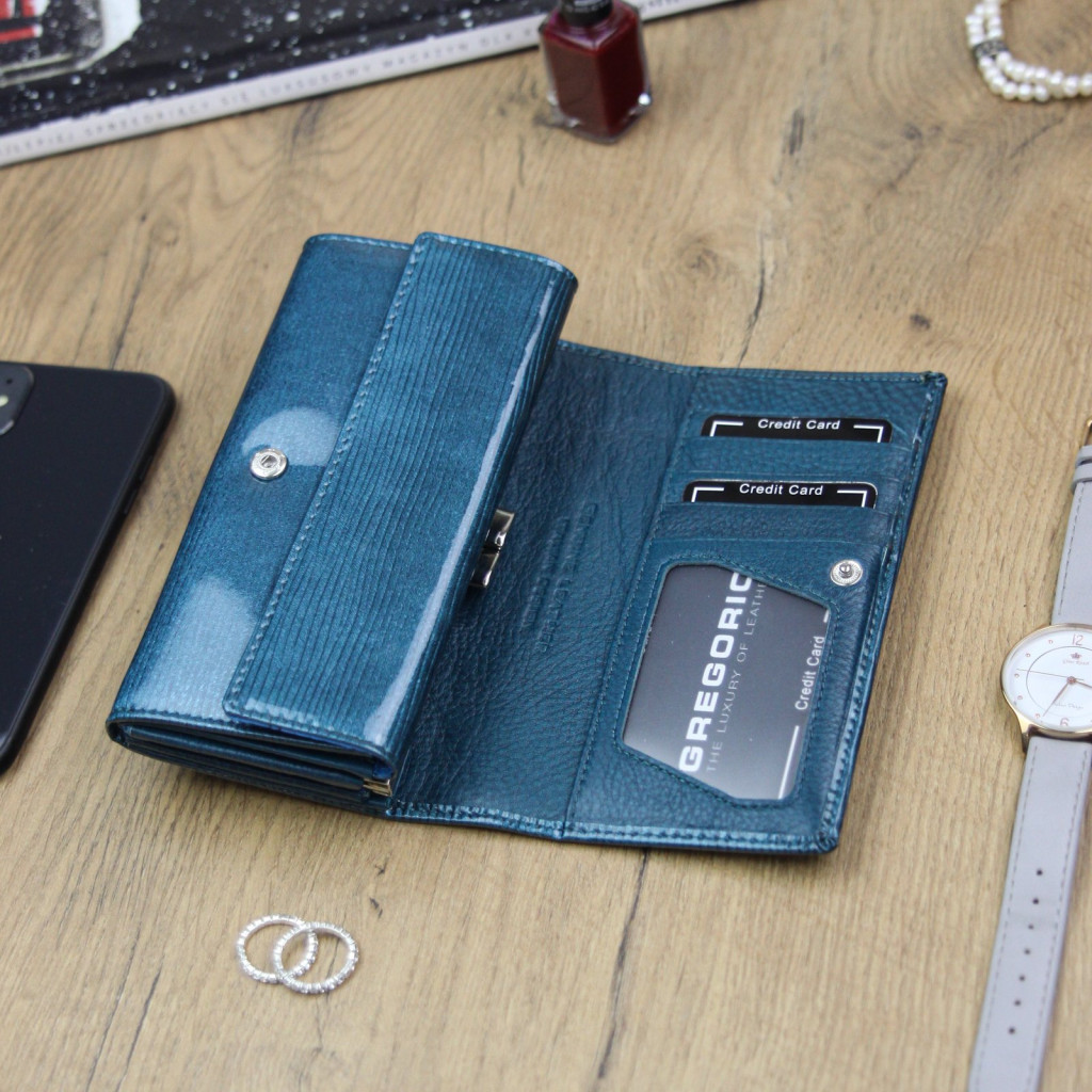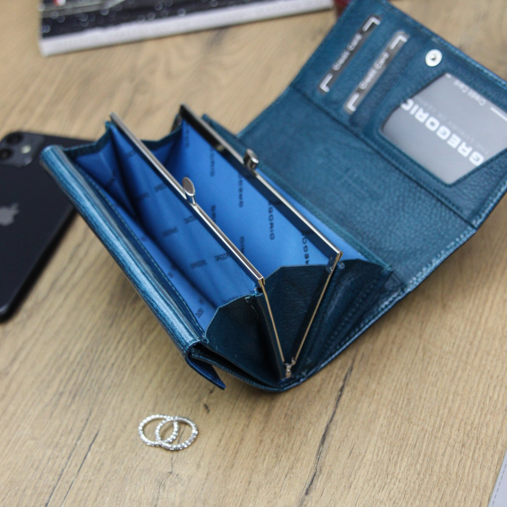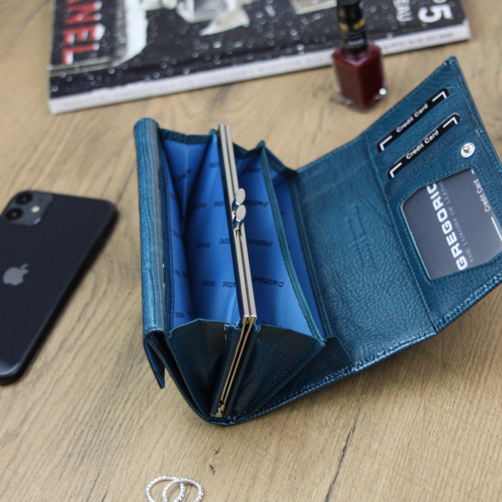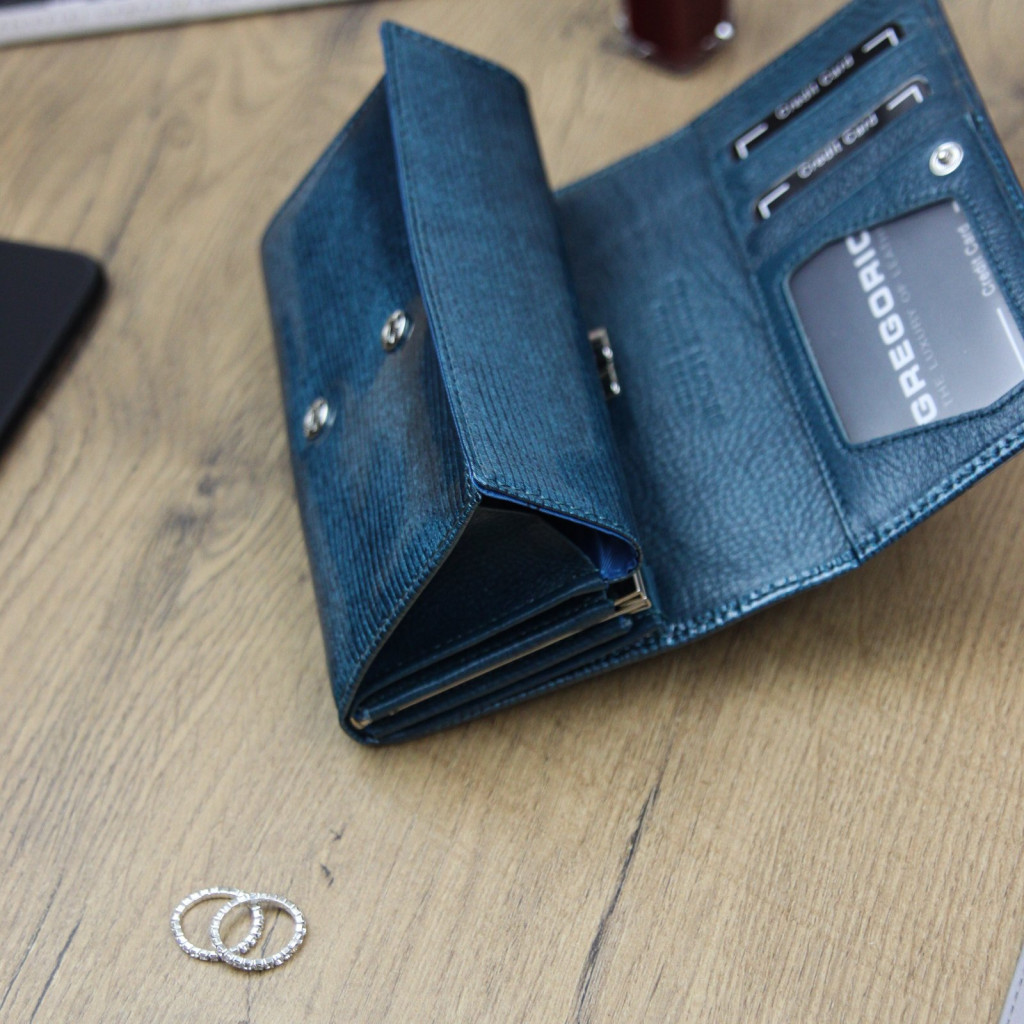 Gregorio LN-107 kék női marhabőr pénztárca 16.5 x 9 x 3.8 cm