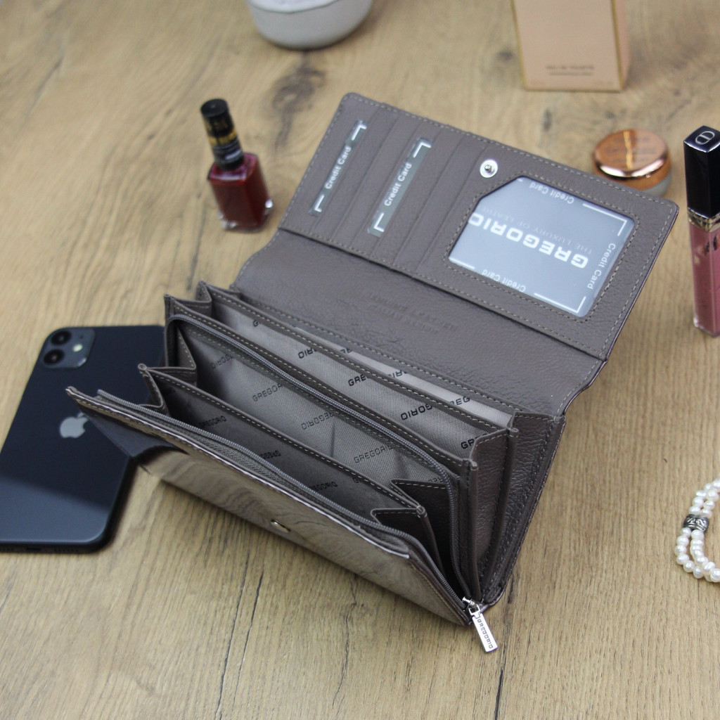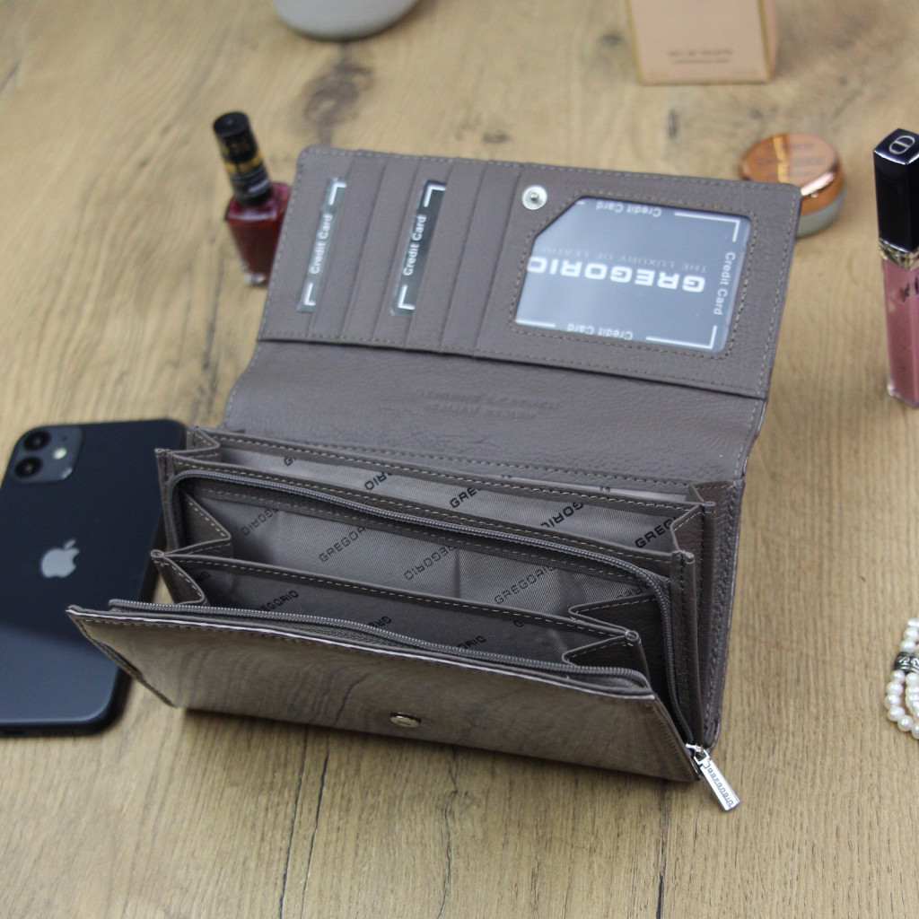 Gregorio PT-121 szürke női marhabőr pénztárca 20 x 10 x 4 cm