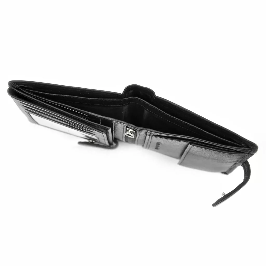Čierna pánska kožená peňaženka Money Keeper CC 5601B ponúka dokonalé spojenie modernej elegancie a praktickosti. Čierna koža prémiovej kvality zaisťuje peňaženke odolnosť a štýlový vzhľad. Vnútorné usporiadanie peňaženky poskytuje praktický úložný priestor pre všetky vaše dôležité doklady, karty a hotovosť, zatiaľ čo priehradka so skrytým zipsom poskytuje extra bezpečnosť pre vaše cennosti.