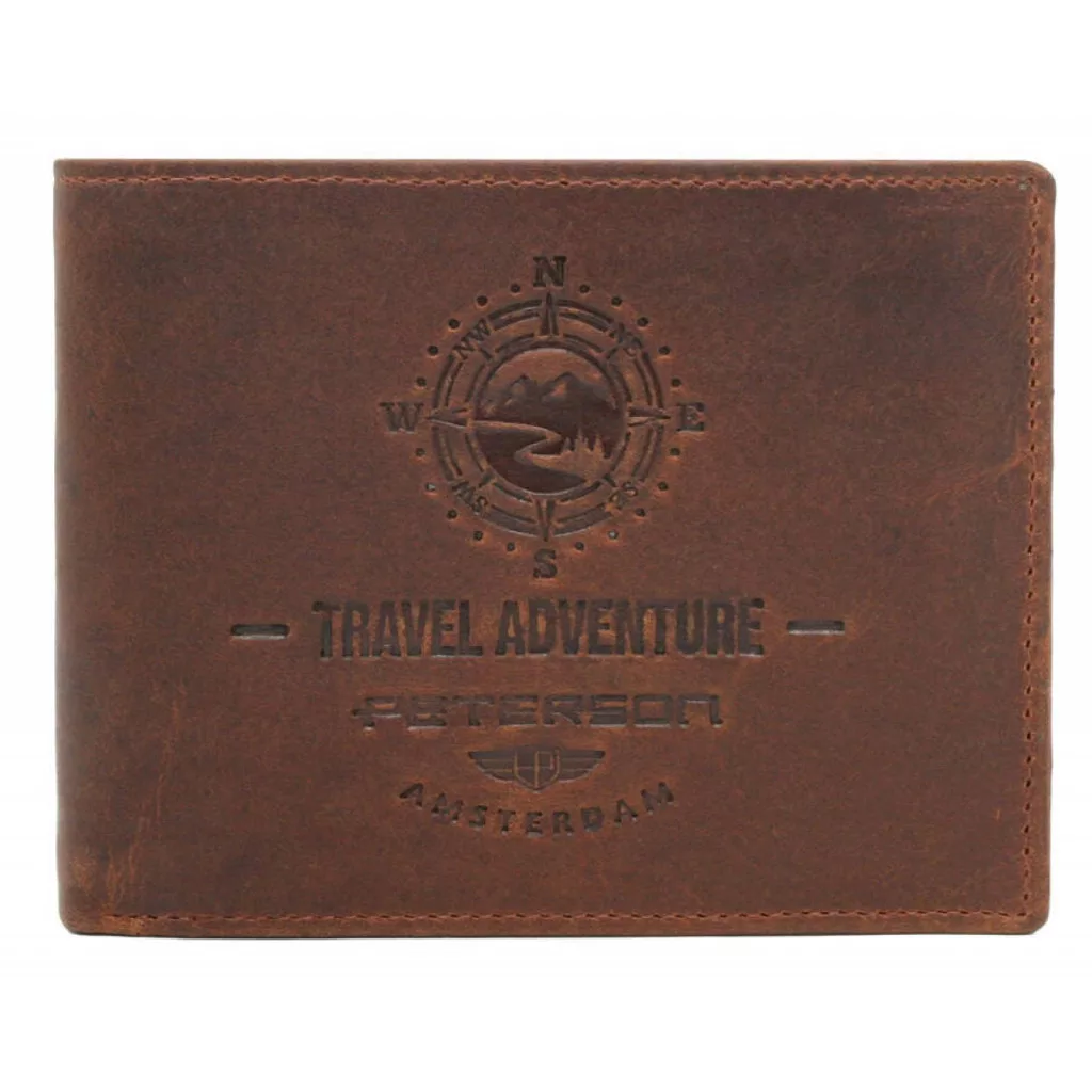 • A Peterson PTN N992-BE-TRAVEL mogyoró férfi bőr pénztárca 12.8 x 9.5 x 2.8 cm prémium valódi bőrből készült, amely tartós és elegáns megjelenést biztosít.
