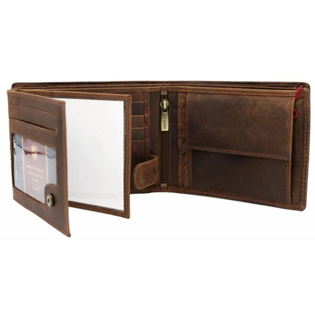 Peterson PTN N992-BE-TRAVEL mogyoró férfi bőr pénztárca 12.8 x 9.5 x 2.8 cm