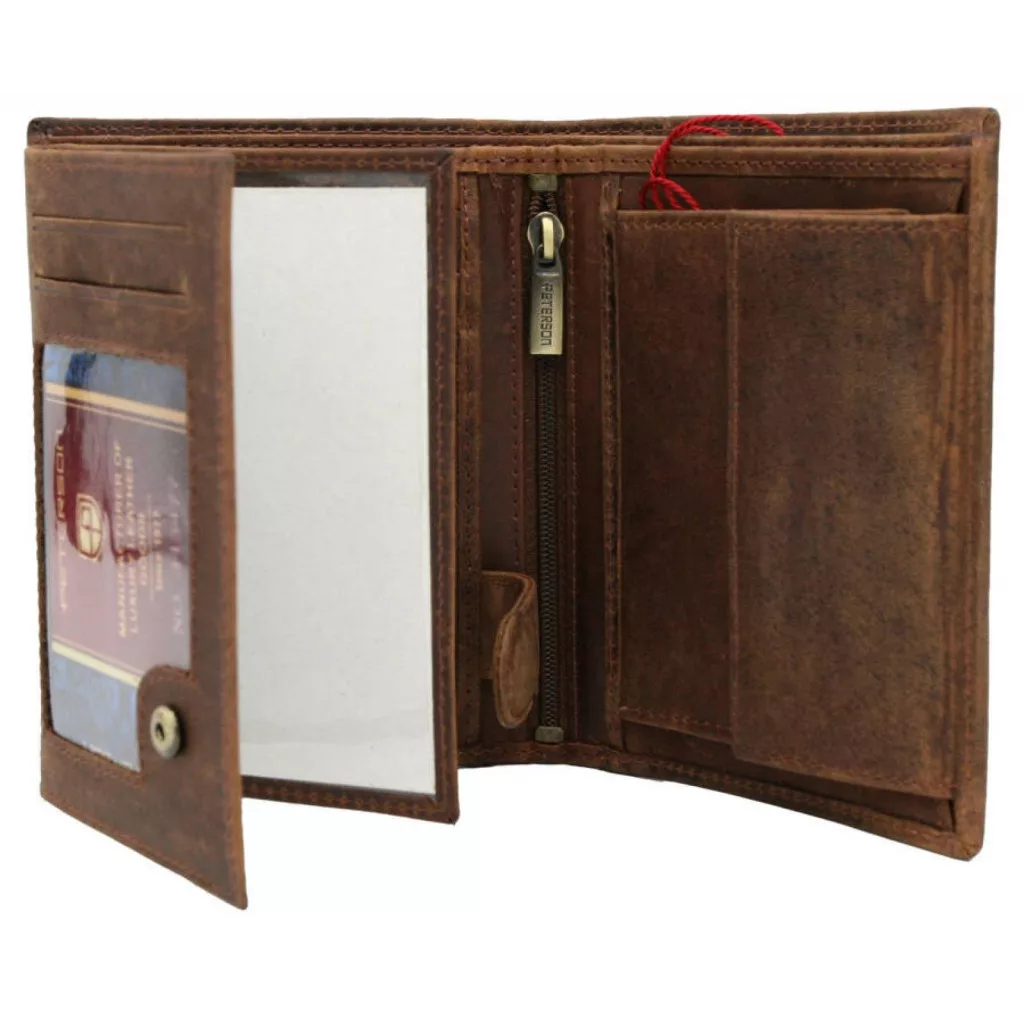 • A Peterson PTN N4-BE-MOUNTAIN konyak férfi bőr pénztárca 9.5 x 12 x 2 cm prémium valódi bőrből készült, amely tartós és elegáns megjelenést biztosít.