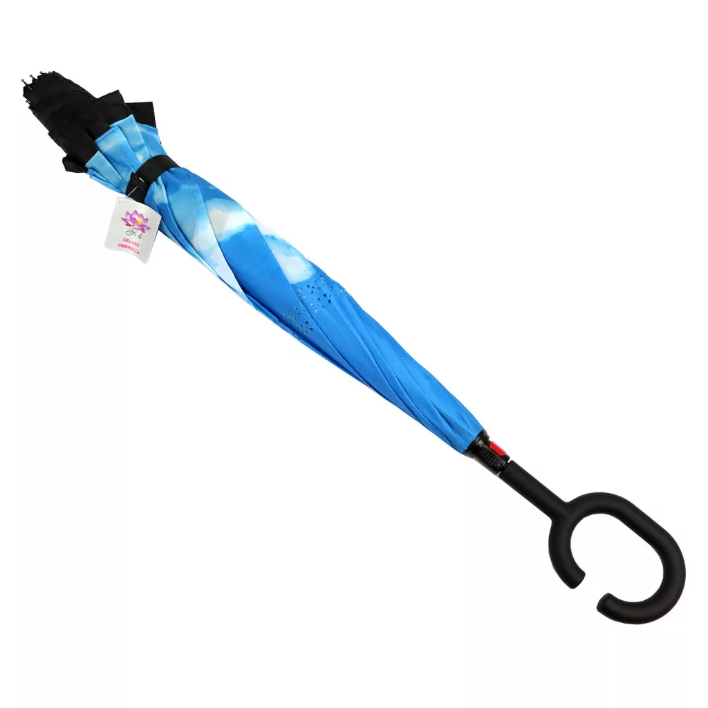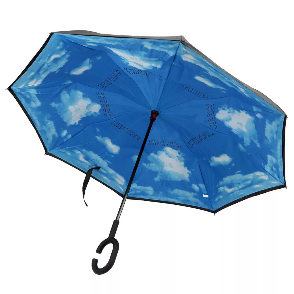 Obojstranný dáždnik Yili je elegantný a jedinečný doplnok do každého daždivého dňa. Vonkajšia strana je jednofarebná čierna, čo poskytuje čistý, klasický vzhľad. Po otvorení však vnútorná strana odhalí vzor oblačne modrej oblohy– poskytuje svieži, prirodzený a atmosférický vzhľad, ktorý rozžiari pochmúrne počasie.