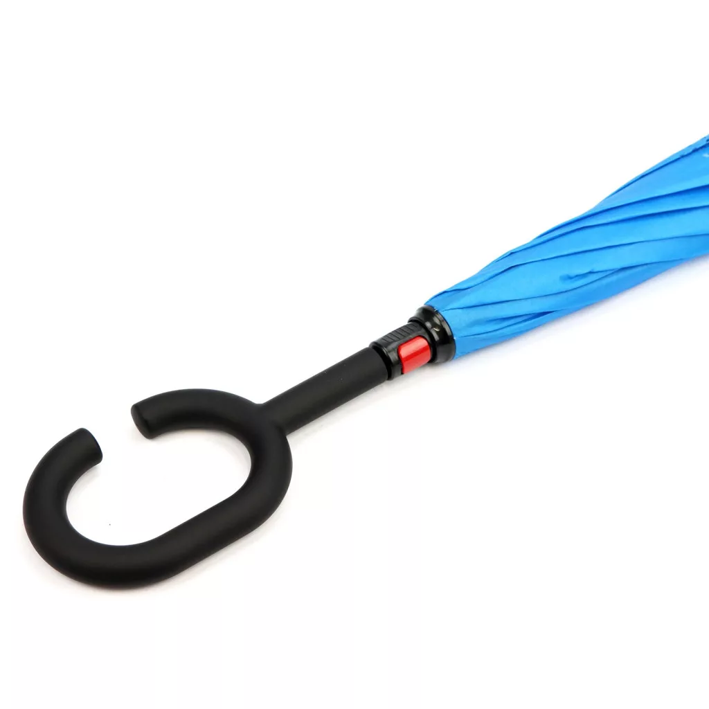 Odolný, vodeodolný polyesterový materiál poskytuje účinnú ochranu, zatiaľ čo vetruodolná konštrukcia zaisťuje spoľahlivý výkon. Rukoväť v tvare Cna konci dáždnika poskytuje ergonomický a pohodlný úchop a je praktická na zaveseniena tašku, háčik alebo akýkoľvek vyčnievajúci povrch.