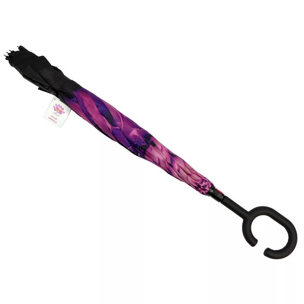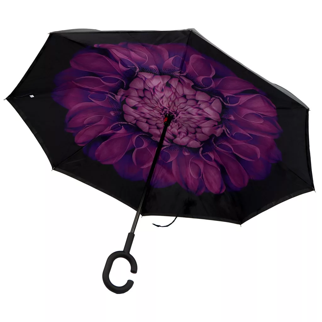 Čierny dáždnik Yili s fialovým kvetinovým vzorom – elegantná, ženská a pohodlná ochrana do daždivých dní