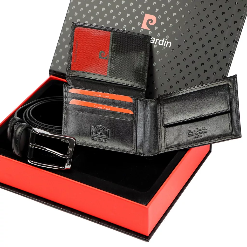 Názov Pierre Cardinje symbolom elegancie, kvality a sofistikovaného pánskeho štýlu na celom svete. Pánska darčeková sada Pierre Cardin ZG-140ponúka dokonalú kombináciu klasického vzhľadu a praktickosti. Sada obsahuje čiernu peňaženku vyrobenú z pravej kožea 135 cm dlhý čierny kožený opasok, ktoré sú umiestnené v exkluzívnej darčekovej krabičke Pierre Cardin s magnetickým zapínaním. Elegantný, nadčasový darček, ktorý je ideálny na každú príležitosť.