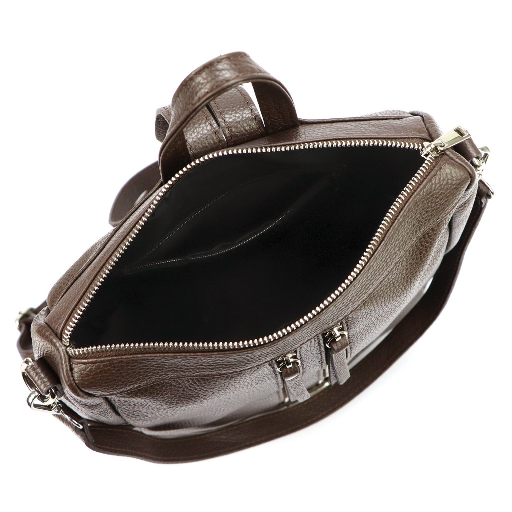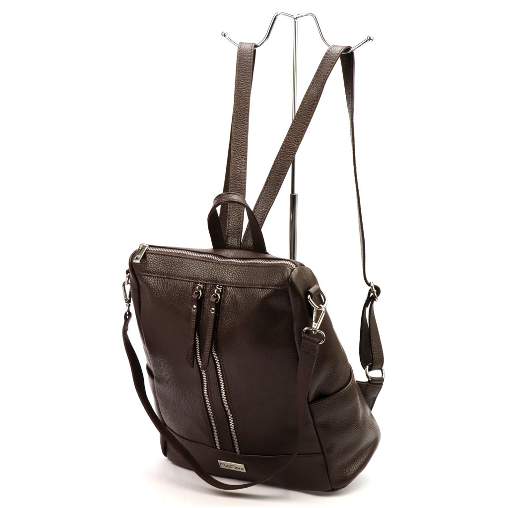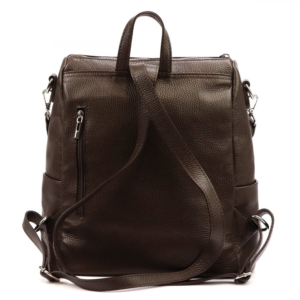 Średniej wielkości plecak z naturalnej, miękkiej skóry licowej. Plecak ma budowę jednokomorową, wykończoną trwałą podszewką, wyposażoną w kieszonkę zapinaną na suwak i kieszeń na telefon. Całość zamykana jest zamkiem błyskawicznym. Z tyłu plecaka wszyto jeszcze jedną dodatkową kieszonkę. Istnieje możliwość dopięcia długiego paska na ramię, co przekształca plecak w torebkę.