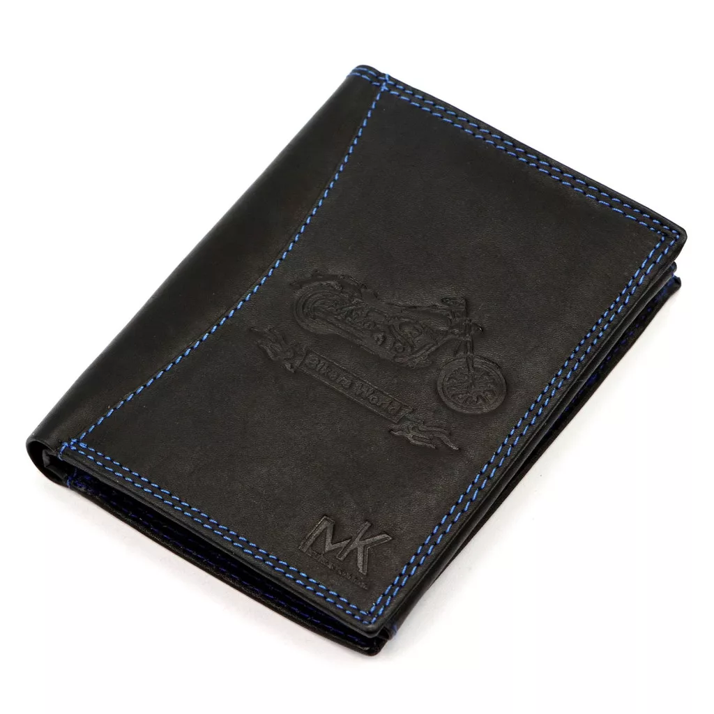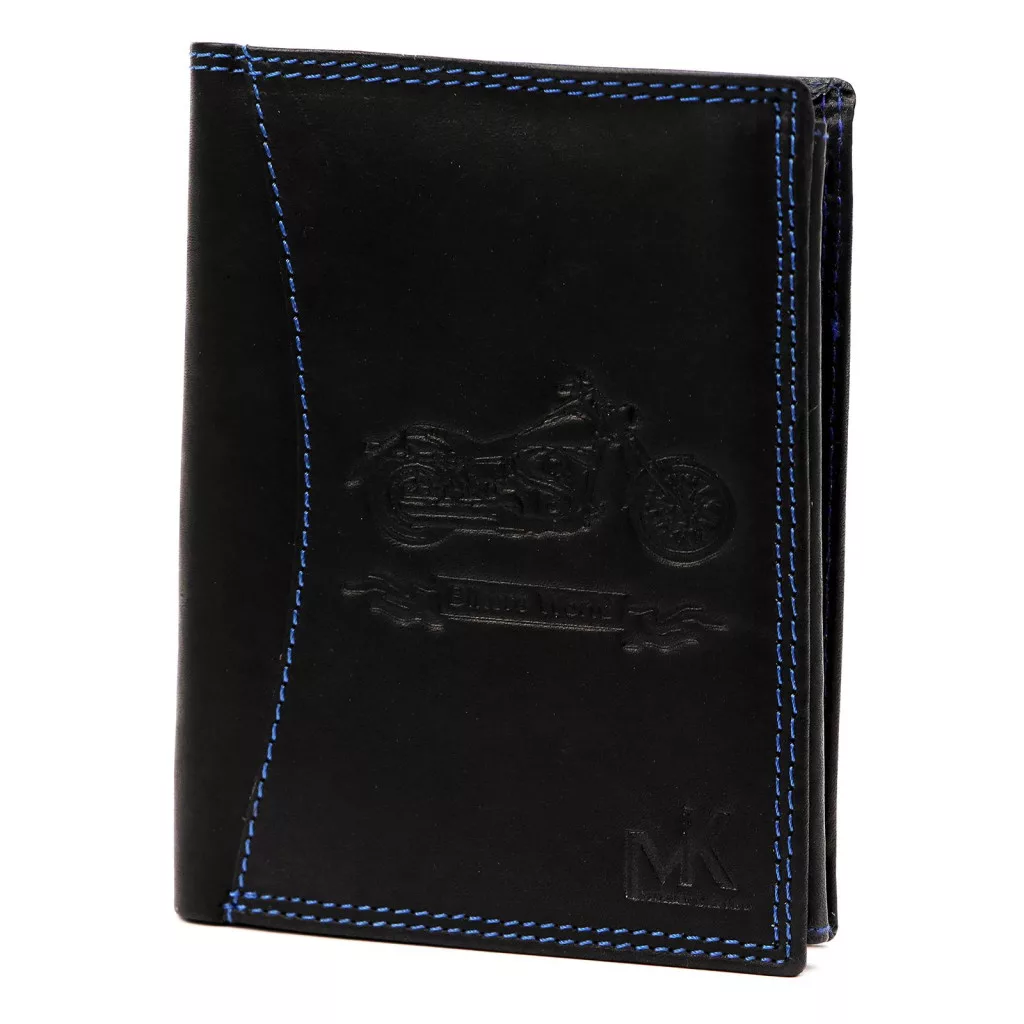 Ak hľadáte výraznú čiernu pánsku peňaženku v motorkárskom štýle, ktorú špeciálne vystihuje modré ozdobné prešívanie, tento kúsok je ideálnou voľbou. Objednajte si teraz a vezmite si pocit slobody so sebou do každodenného života!