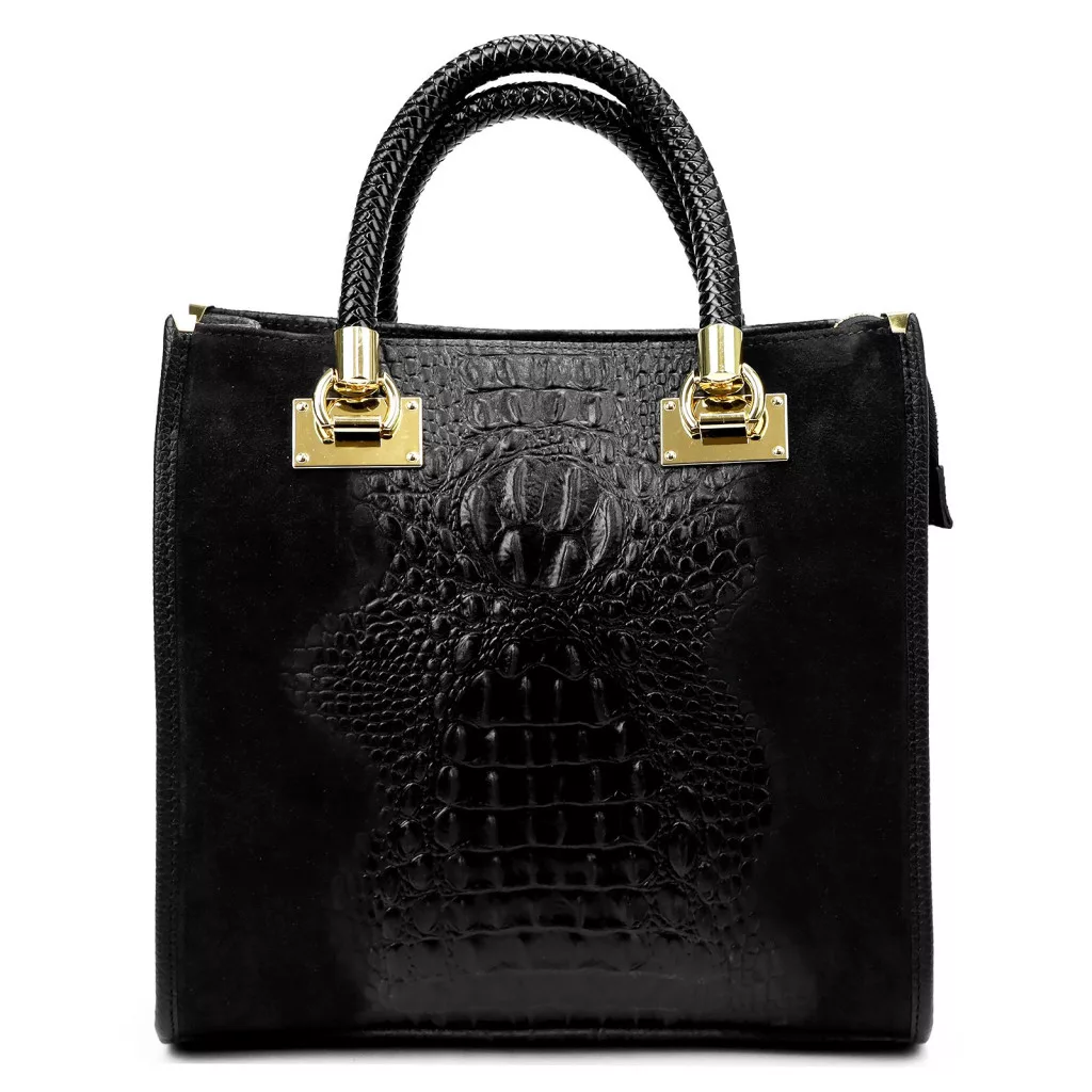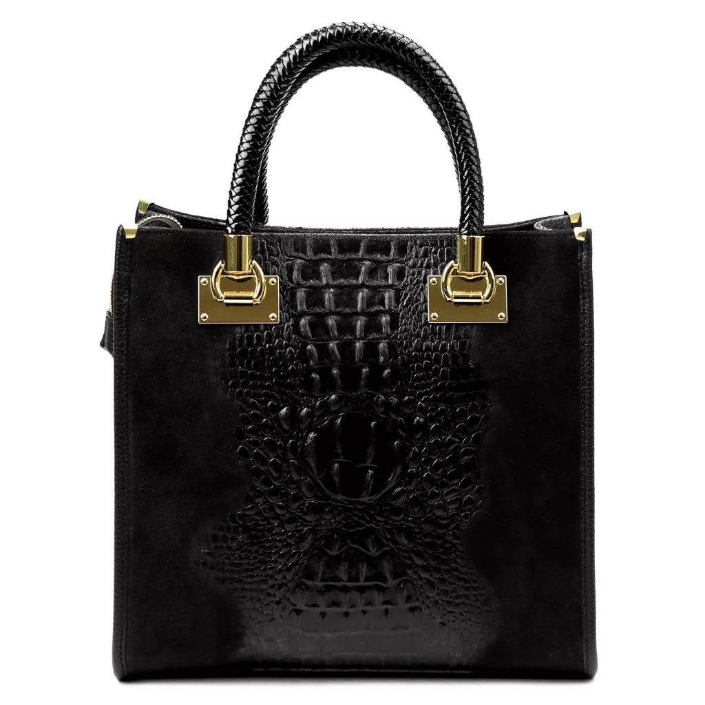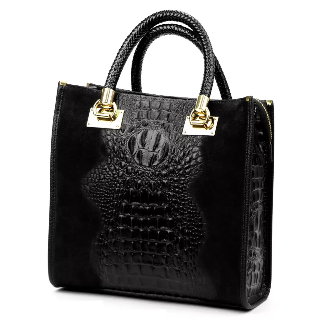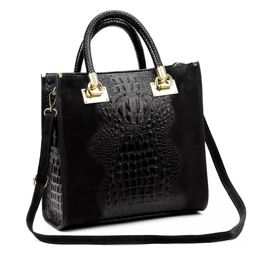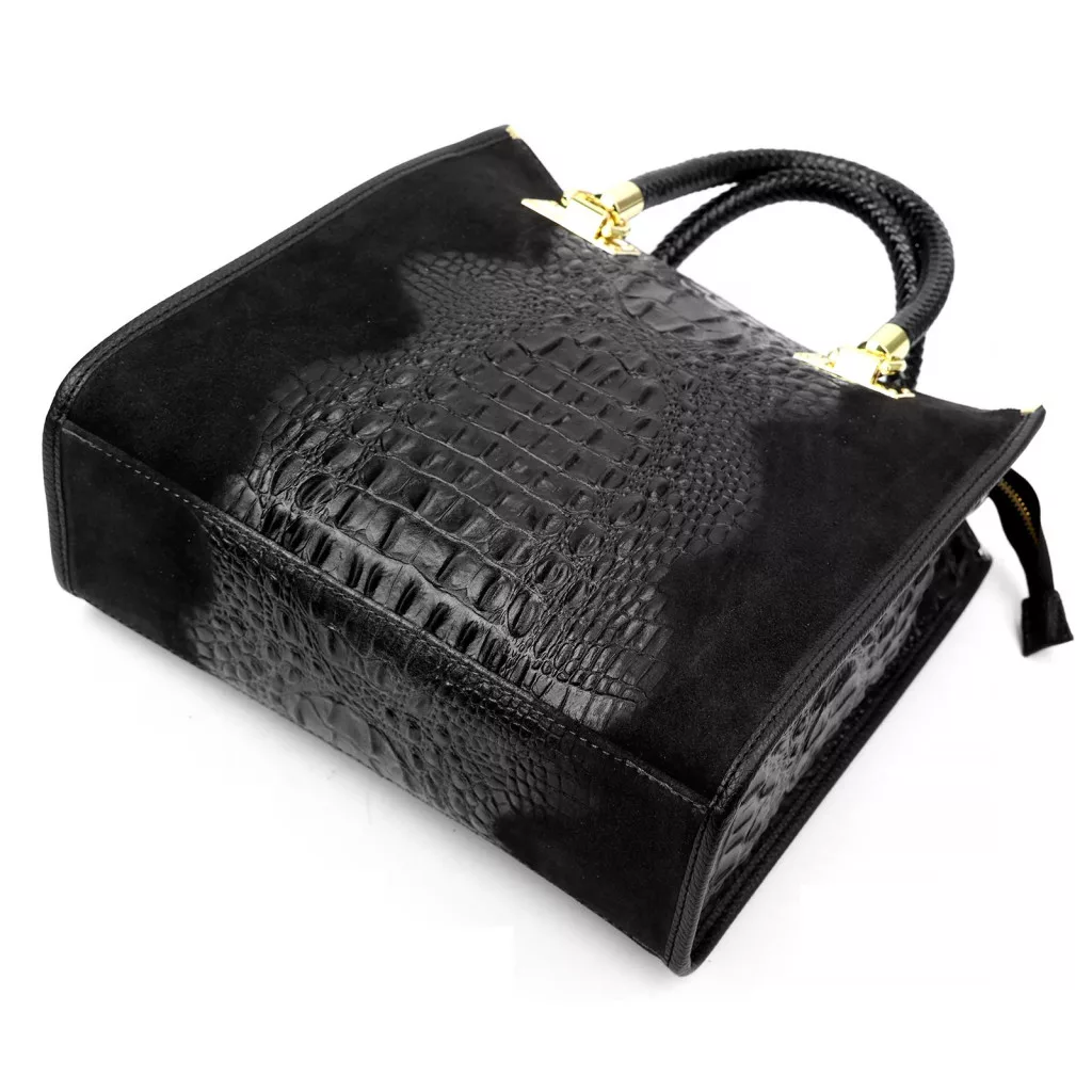 Luka 26-072 fekete krokodilmintás-velúr bőr női kézitáska 30 x 28 x 13 cm