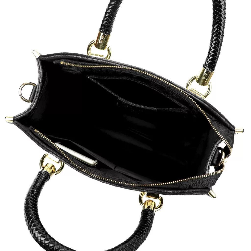A táska prémium minőségű, olasz velúr marhabőrből készült, amely puha tapintású és elegáns megjelenést biztosít. A felületen krokodilbőr mintázatú dombornyomás jelenik meg, amely különleges textúrát és exkluzív karaktert ad a táskának. A fekete szín a feng shui szerint az erő, a stabilitás és a bölcsesség jelképe. Időtálló árnyalata elegáns és könnyen kombinálható megjelenést biztosít.
