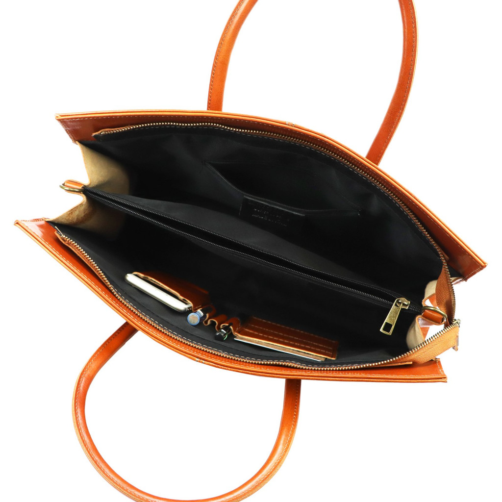 Elegantný, klasický a obchodný vzhľad. Hodvábne hladká hovädzia koža, koňakovo hnedý odtieň a štruktúrovaný tvar vytvárajú sofistikovanú aktovku, ktorá harmonicky zapadne do profesionálneho prostredia.