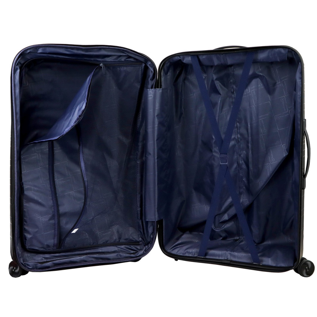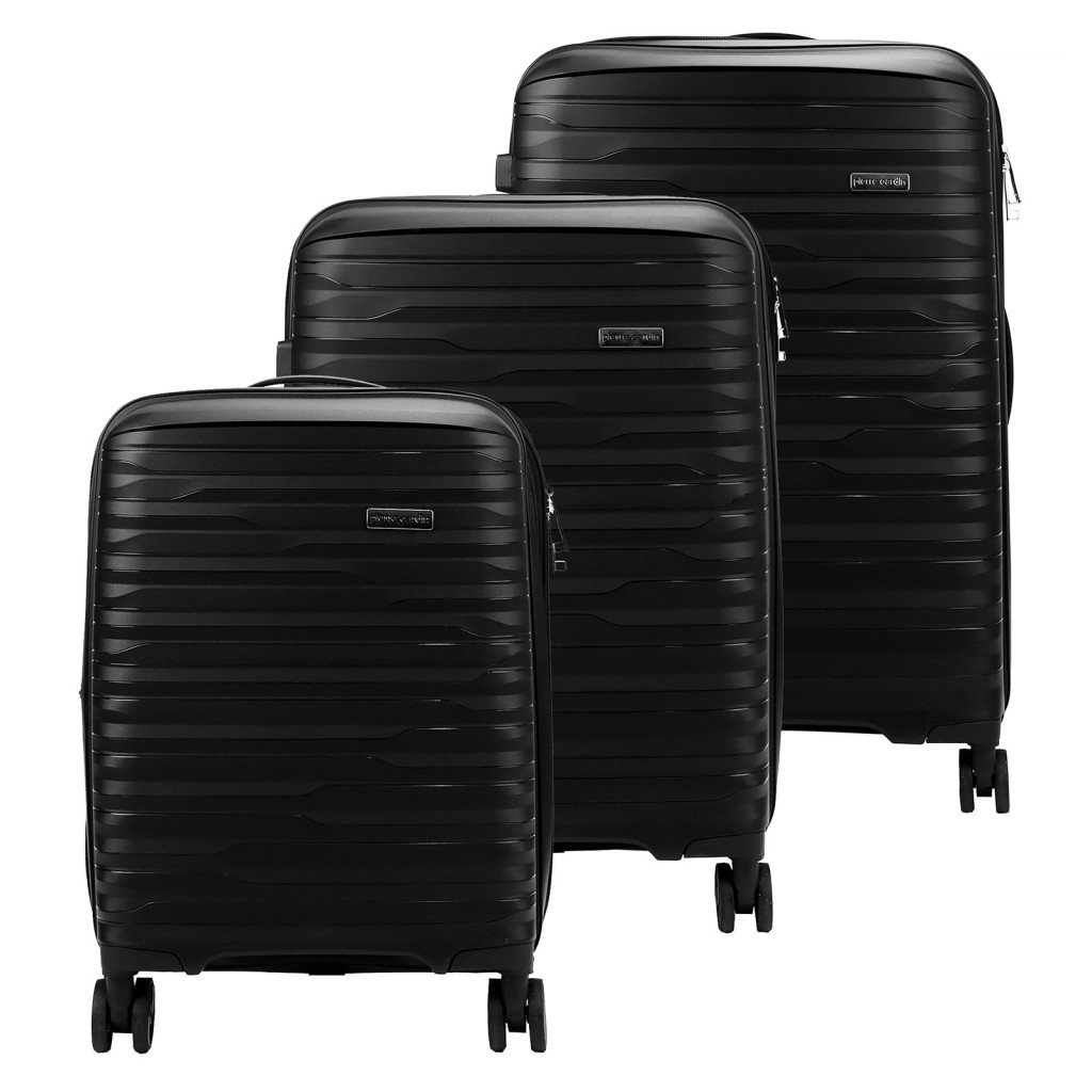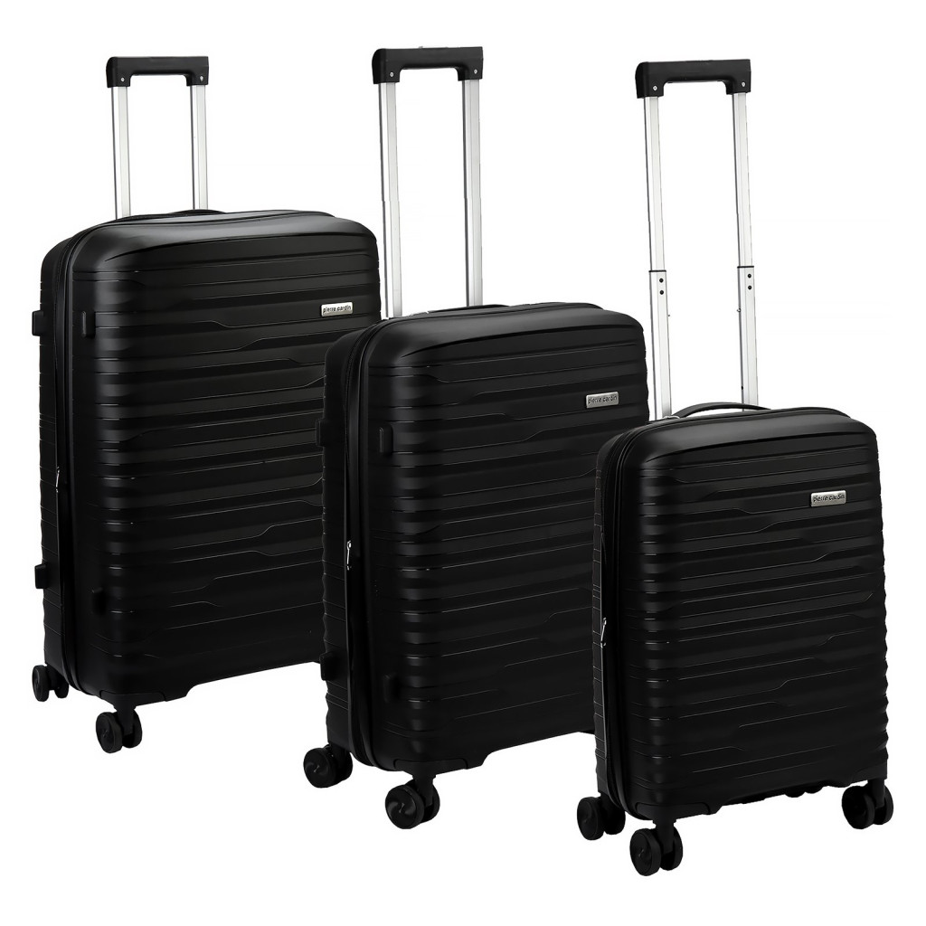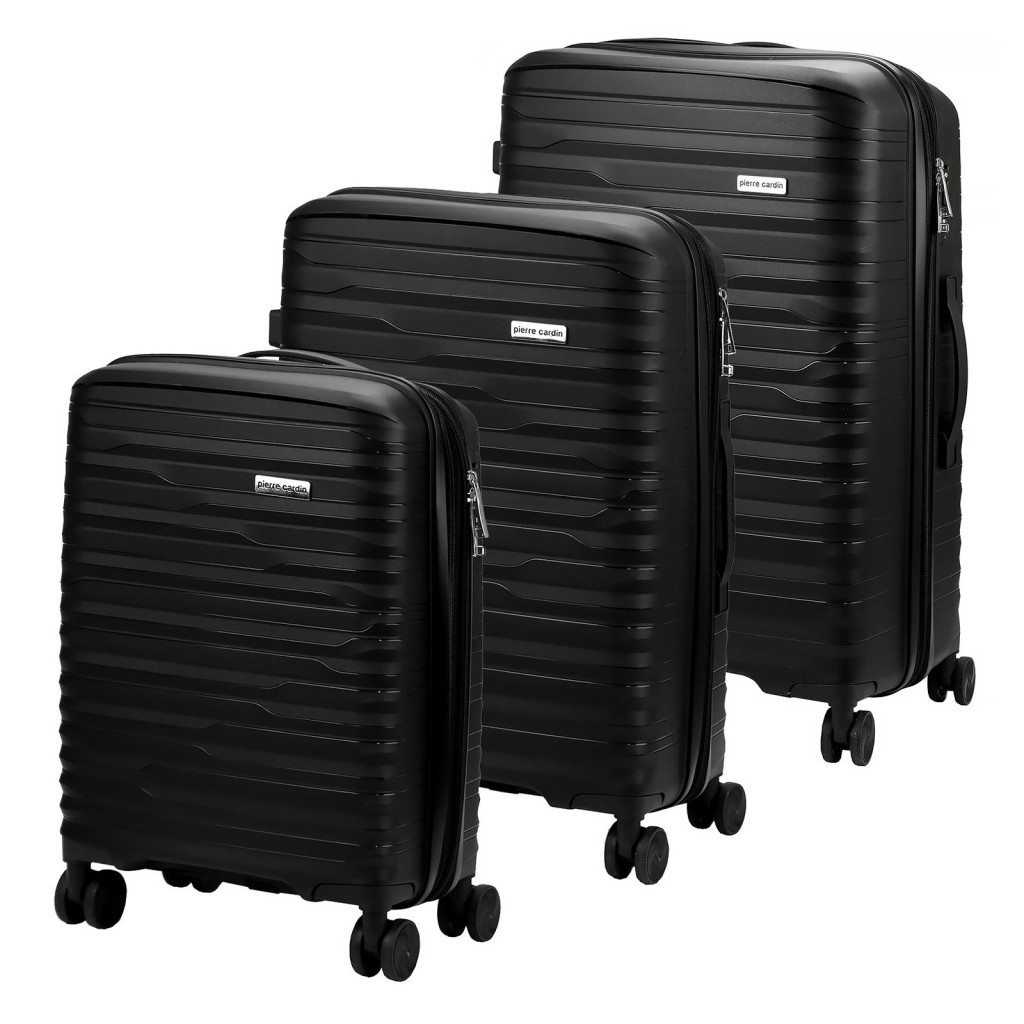 Komplet walizek marki Pierre Cardin. Linia bagażu stworzona z ABS-u, tworzywa gwarantującego niezawodną ochronę przewożonych przedmiotów. Walizki Pierre Cardin wyposażone są w cztery podwójne, obrotowe kółka, wysuwany uchwyt oraz gumowe rączki ułatwiające przemieszczanie się z bagażem. Wnętrze wykończono trwałą podszewką. Ponadto, zastosowano zabezpieczenie w postaci zamka szyfrowego uniemożliwiającego osobom niepożądanym dostęp do wnętrza. Walizki posiadają metalowe logo Pierre Cardin.
