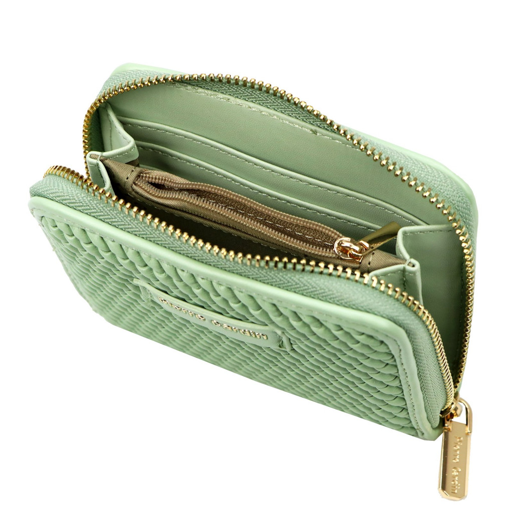 A Pierre Cardin MISS11 1041 zöld női pénztárca 13 x 10.5 x 3.5 cm elegáns és friss megjelenésével különleges kiegészítő a mindennapokra. A zöld szín természetes, harmonikus hatást kelt, amely egyszerre sugároz nyugalmat és stílust. Kompakt méretének köszönhetően könnyen hordozható, mégis minden fontos értéked számára praktikus helyet biztosít.